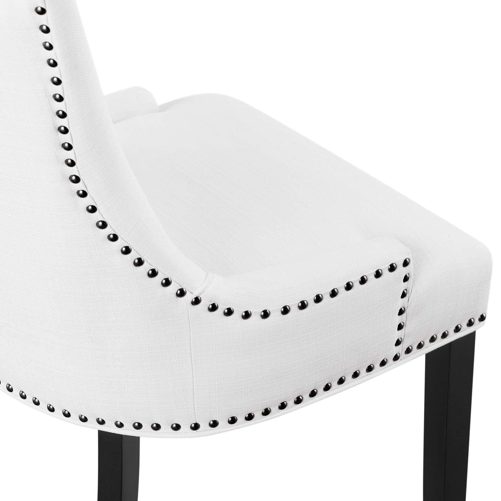 Inspire your dŽcor with the Marquis Dining Side Chair. Marquis is fashioned with a chic hourglass shaped back, studded nailhead trim, non-marking foot caps, tapered wood legs, and a regal seat generously padded in foam and upholstered in polyester fabric. Marquis works well in both modern and traditional dining rooms as well as in the living room, entryway, or home office. Set Includes: One - Marquis Dining Chair