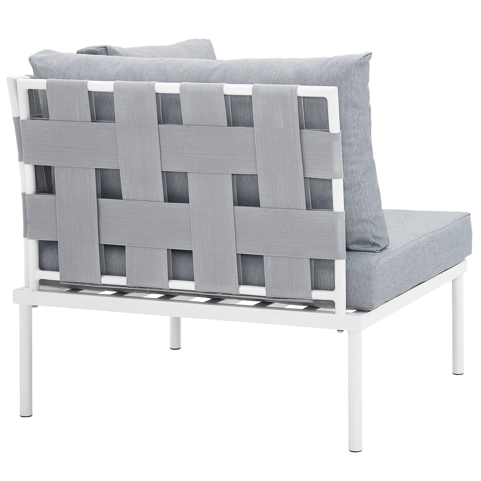 Engage life with Harmony Outdoor Patio Corner Sofa. Enjoy casual conversation under the open sky with an all-weather waterproof outdoor sofa chair from a versatile furniture set that delivers an exceptional outdoor porch, patio, balcony or garden experience. An exceptional modern outdoor furniture set that exceeds expectations, Harmony Patio Sofa Chair comes with silk polyester seat back weave, square powder coated aluminum bases, and non-marking foot caps. An outside sectional corner sofa that arranges according to the spontaneous needs of your guests, set your sights on open and inspired moments with the Harmony Outdoor Patio Collection. Set Includes: One - Harmony Corner Sofa