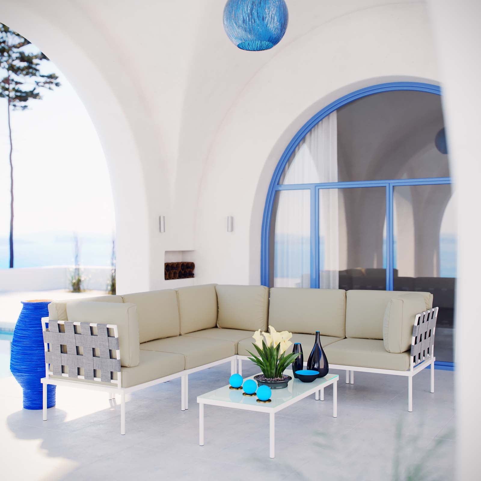 Modway Harmony 6 Piece Outdoor Patio Aluminum Sectional Sofa Set EEI-2627-WHI-BEI-SET
