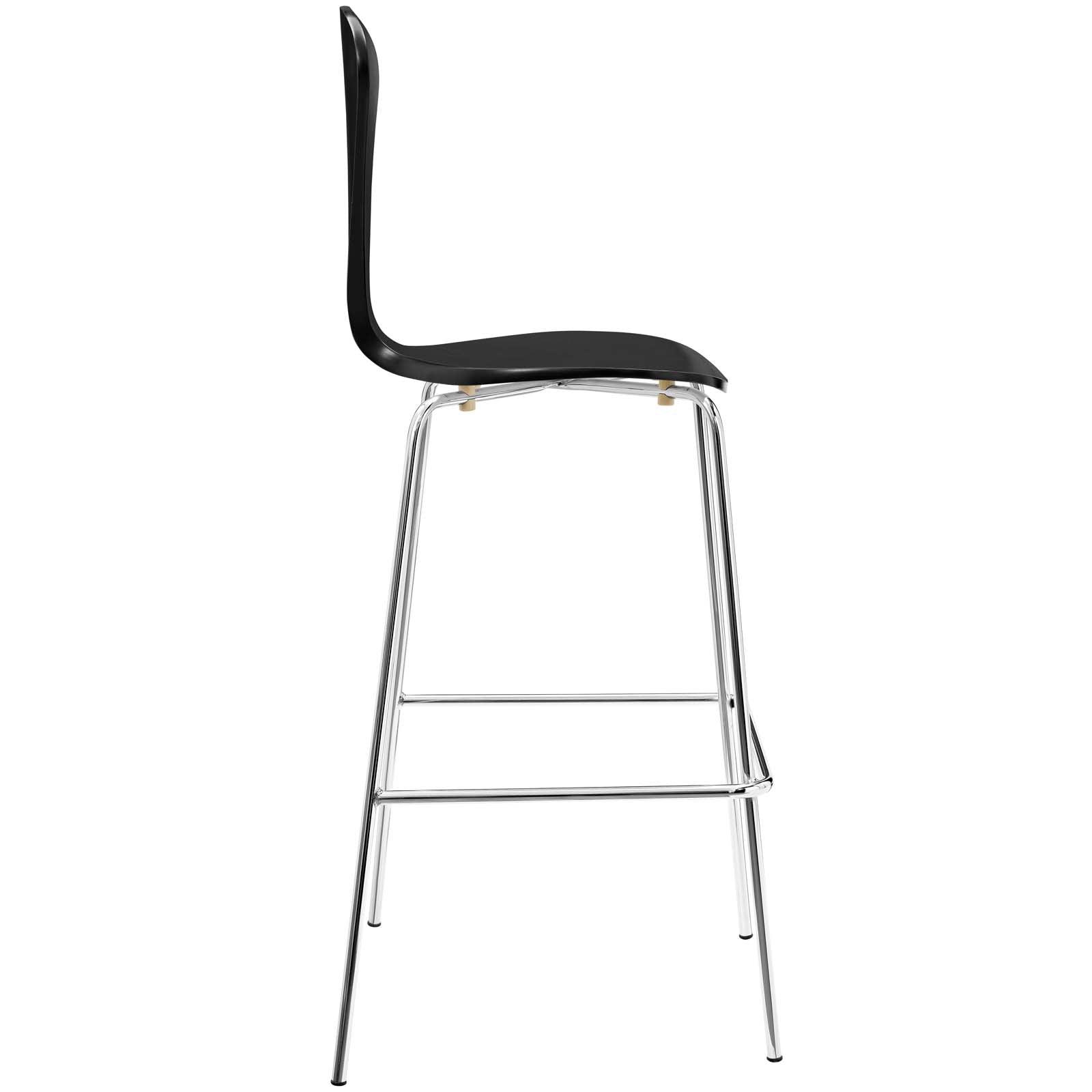 Enhance your decor with a sophisticated mid-century styled update. The Passage Bar Stool features a minimalist design made of lacquered plywood with a sturdy base and footrest made of chrome. Complete with non-marking plastic foot caps to help protect your flooring, Passage makes a statement with a distinctive V-shaped back and waterfall seat. ce your decor with a sophisticated mid-century styled update. The Passage Bar Stool features a minimalist design made of lacquered plywood with a sturdy base and footrest made of chrome. Complete with non-marking plastic foot caps to help protect your flooring, Passage makes a statement with a distinctive V-shaped back and waterfall seat. Set Includes: One - Passage Dining Bar Stool.