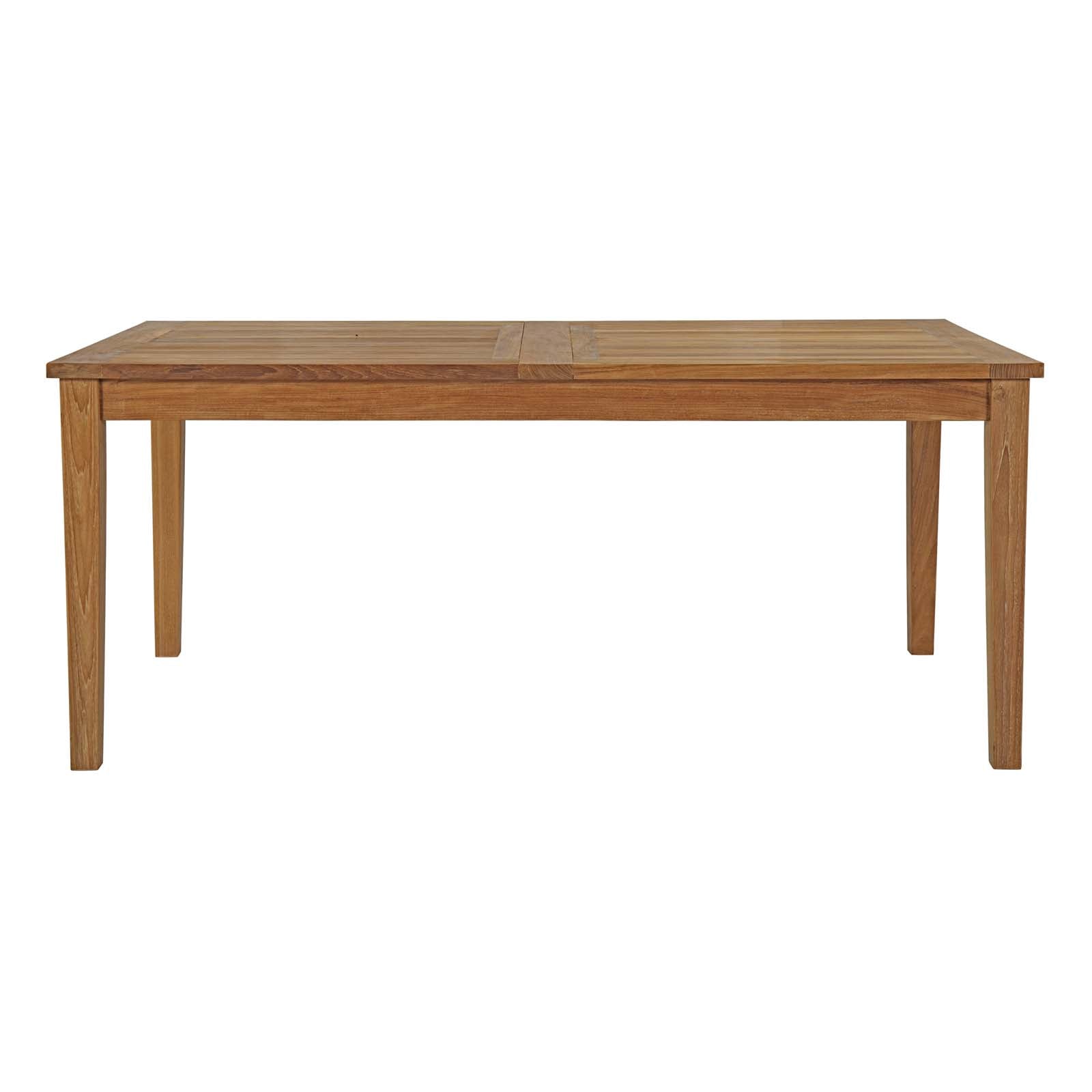 Harbor your greatest expectations with the luxurious Marina Teak Wood Outdoor Patio Extendable Dining Table. Marina Patio Dining Table has a seating arrangement perfect for every member of your crew as you breathe the fresh, crisp air of a day spent with friends and family. Known for its natural ability to withstand extreme weather conditions, teak is the wood selection of choice for long-lasting outdoor patio furniture. Now you can enjoy Marina Teak Wood Outdoor Dining Table as it extends from 70.5"L to 108.5" with its durable construction, alongside a modern design that persistently looks new and welcoming in your patio dining environs. Assembly required. Set Includes: One - Marina Dining Table