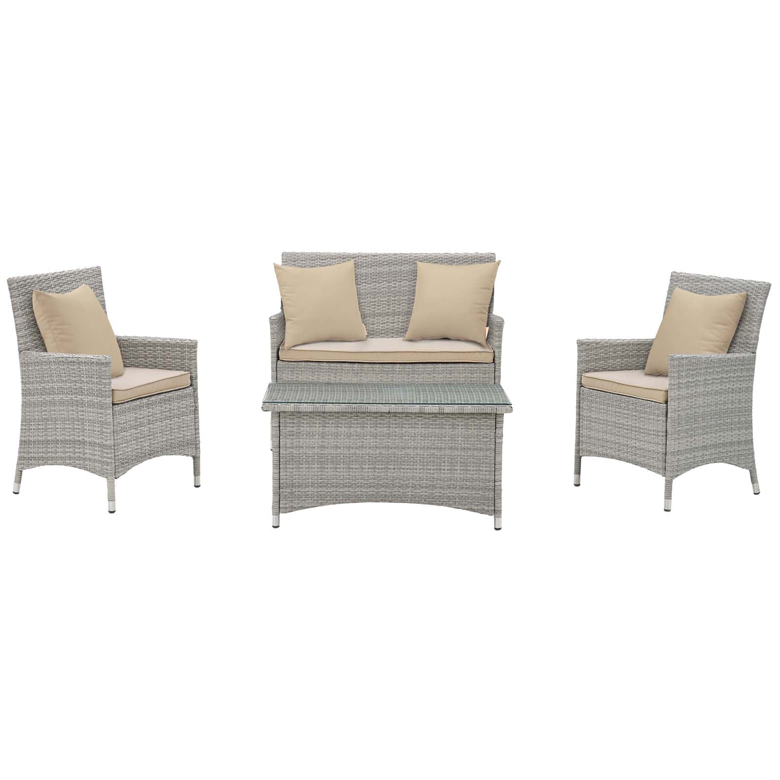 Bridge 4 Piece Outdoor Patio Patio Conversation Set with Pillow Set