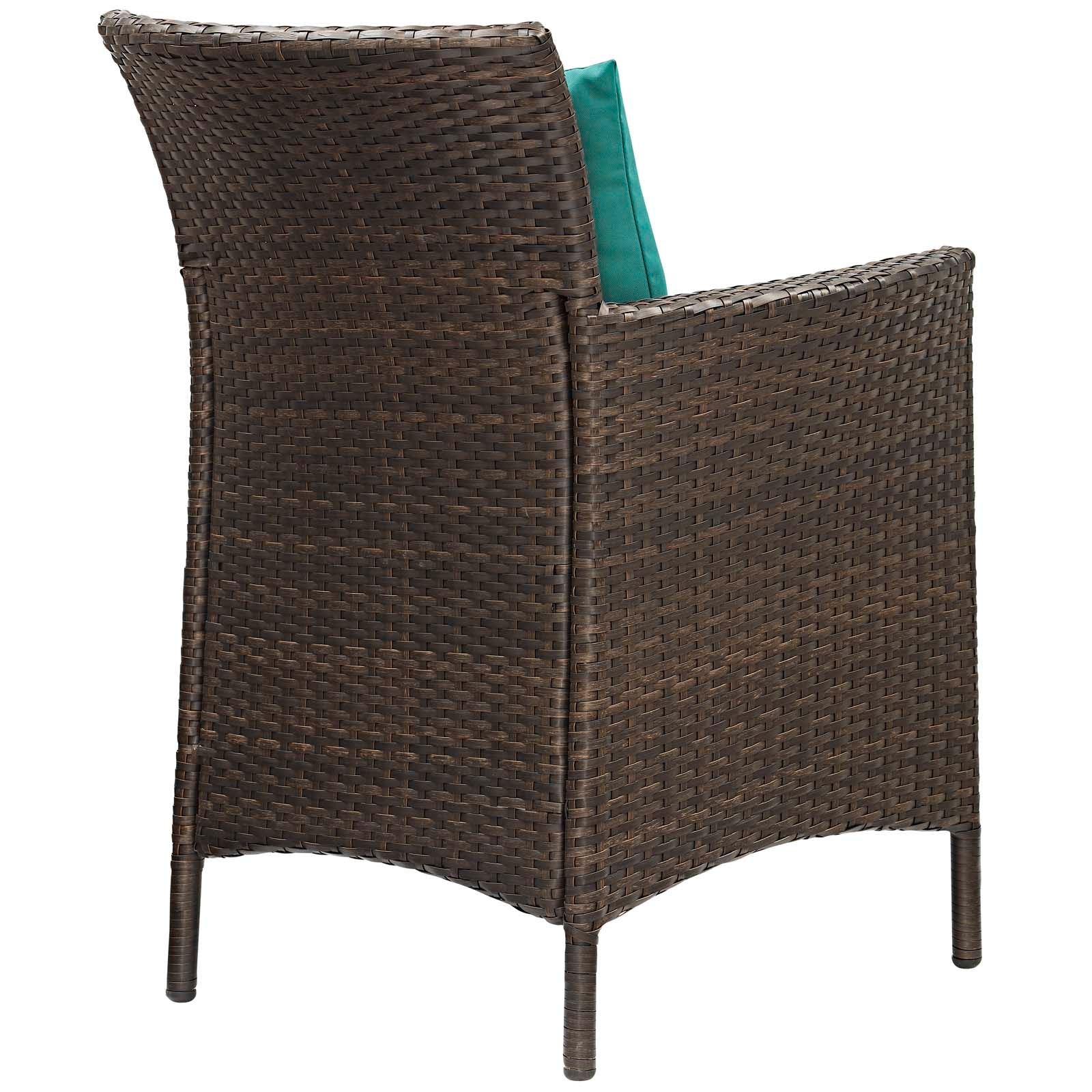 Refresh your alfresco space with the Conduit Outdoor Patio Dining Armchair. Bringing transitional style with contemporary modern flair to any outdoor area, Conduit Patio Dining Chair features a powder-coated aluminum frame wrapped in synthetic UV-resistant wicker rattan. Foam padded cushions and waterproof covers offer a comfortable seat while dining or entertaining. All-weather and long lasting, this versatile outdoor dining chair creates a serene setting for your morning tea, sunny lunch, sunset cocktail, and everything in between. Set Includes: One - Conduit Dining Armchair