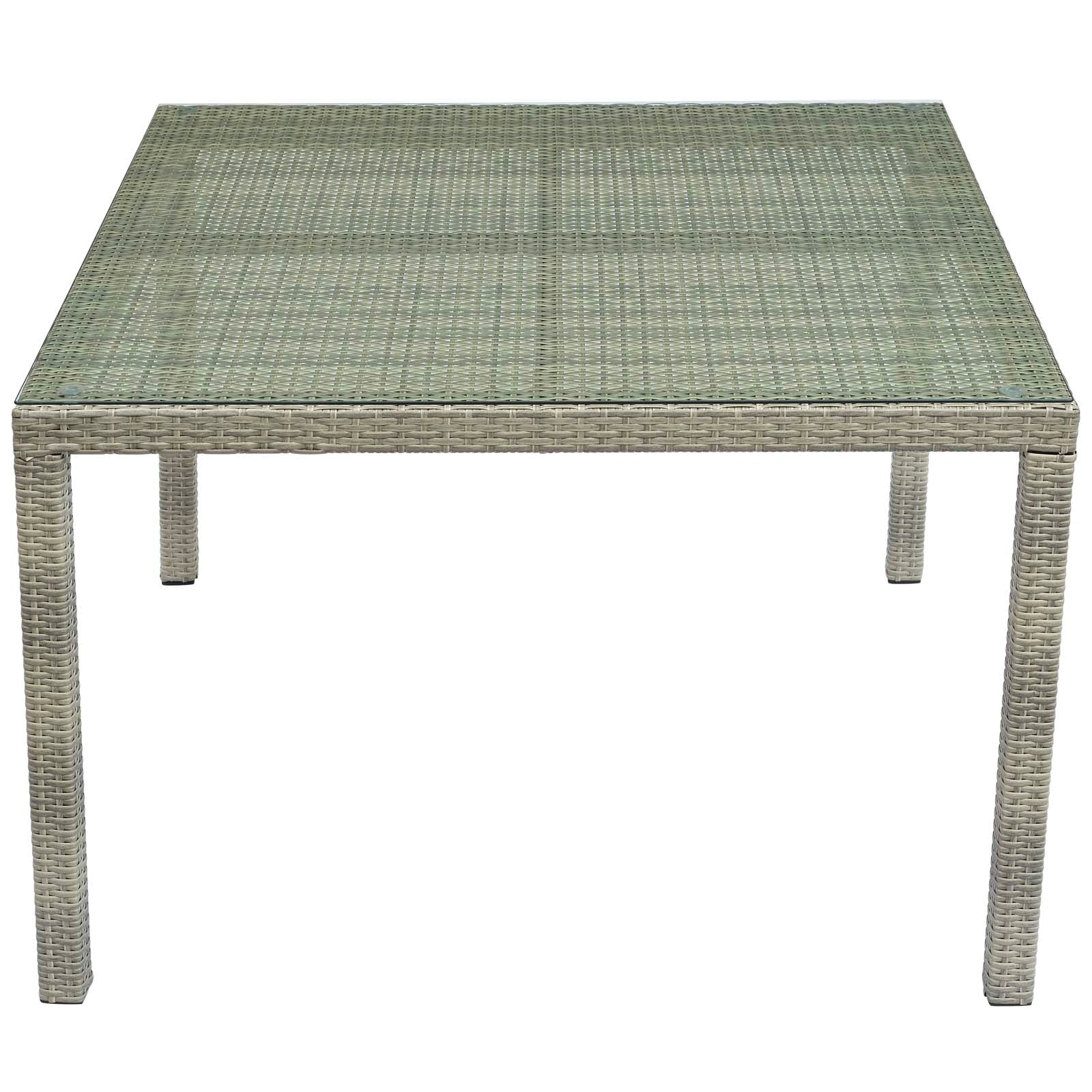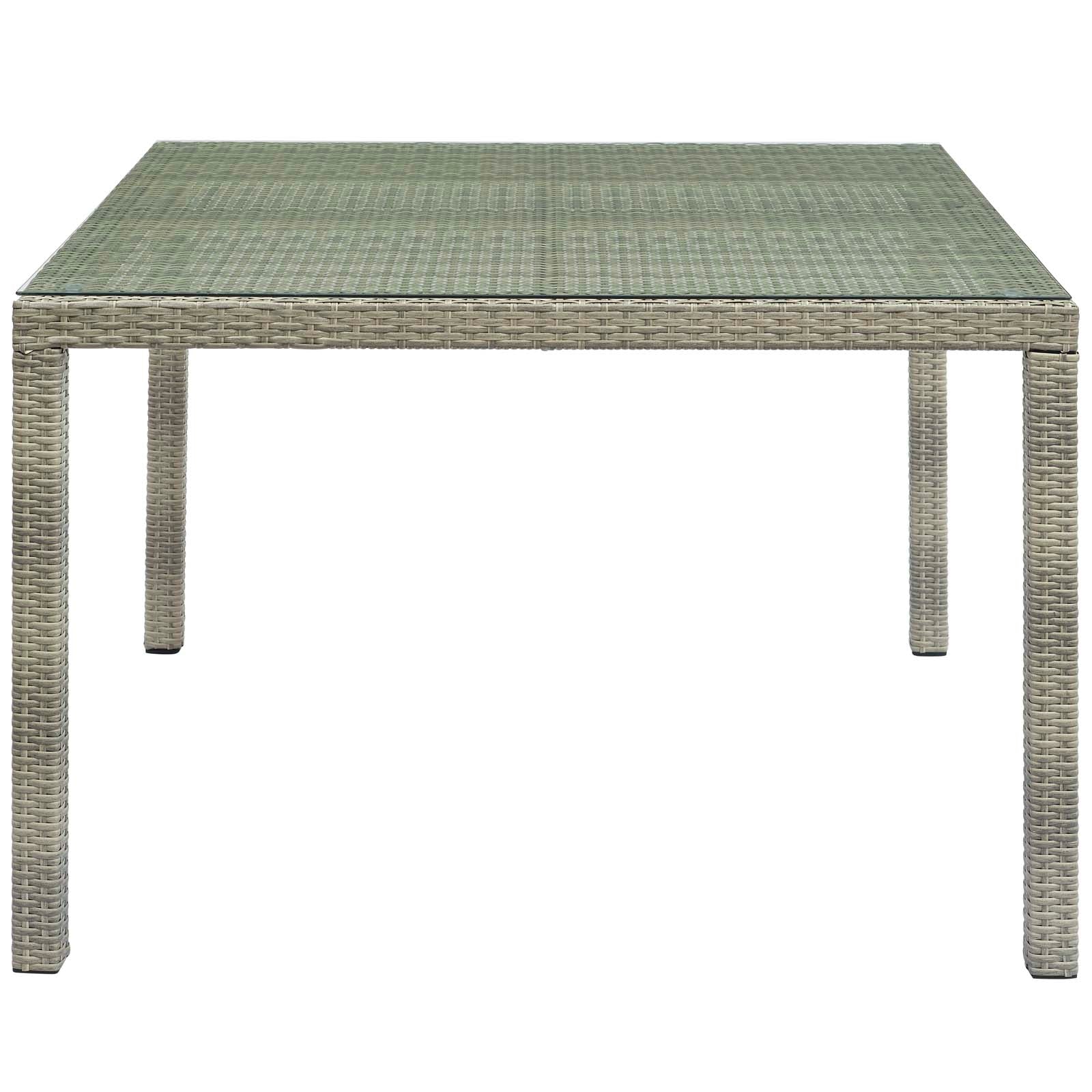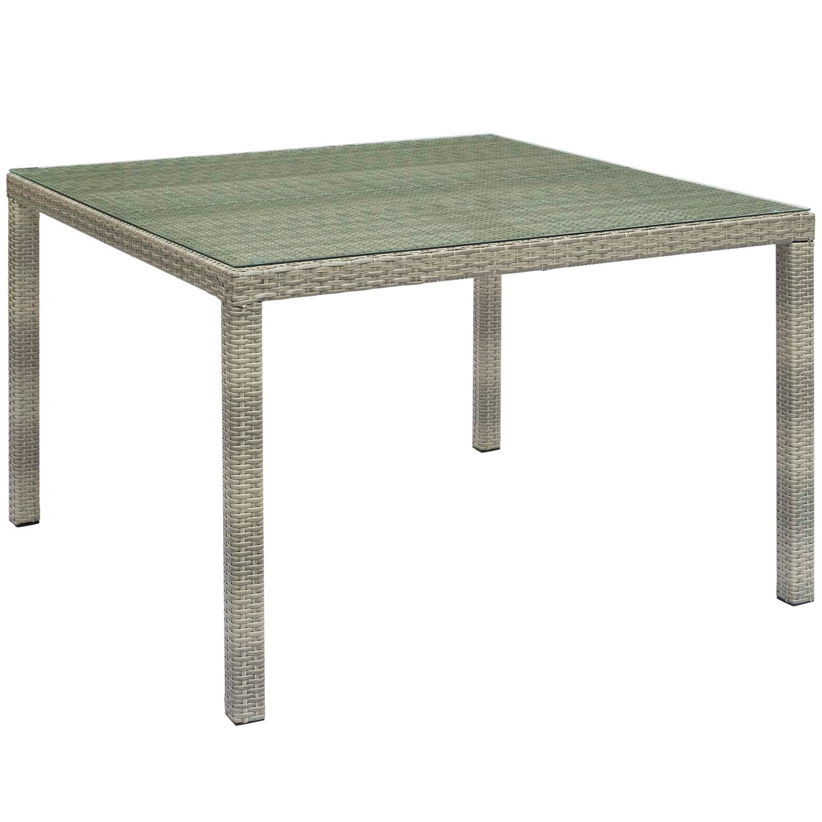 Refresh your alfresco space with the Conduit Outdoor Patio Collection. Bringing transitional style with contemporary modern flair to any outdoor area, Conduit 47� Square Patio Dining Table features a powder-coated aluminum frame wrapped in UV-resistant synthetic wicker rattan. A tempered glass tabletop provides a smooth, easy-to-clean surface ideal for dining and entertaining. All-weather and long lasting, this versatile outdoor dining table creates a serene setting for your morning tea, sunny lunch, sunset cocktail, and everything in between. Set Includes: One - Conduit 47" Square Table