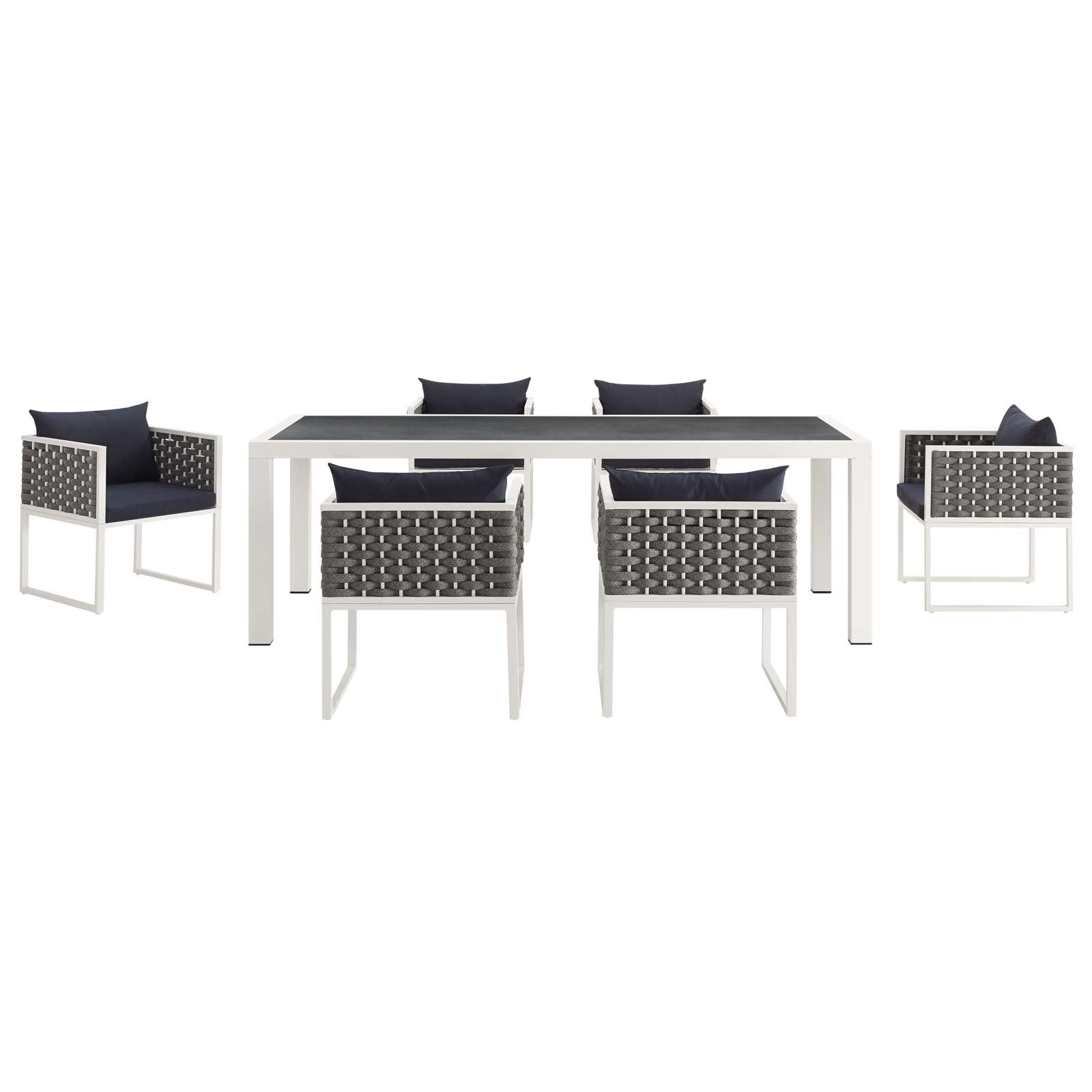Modway Stance 7 Piece Outdoor Patio Aluminum Dining Set EEI-3185-WHI-NAV-SET