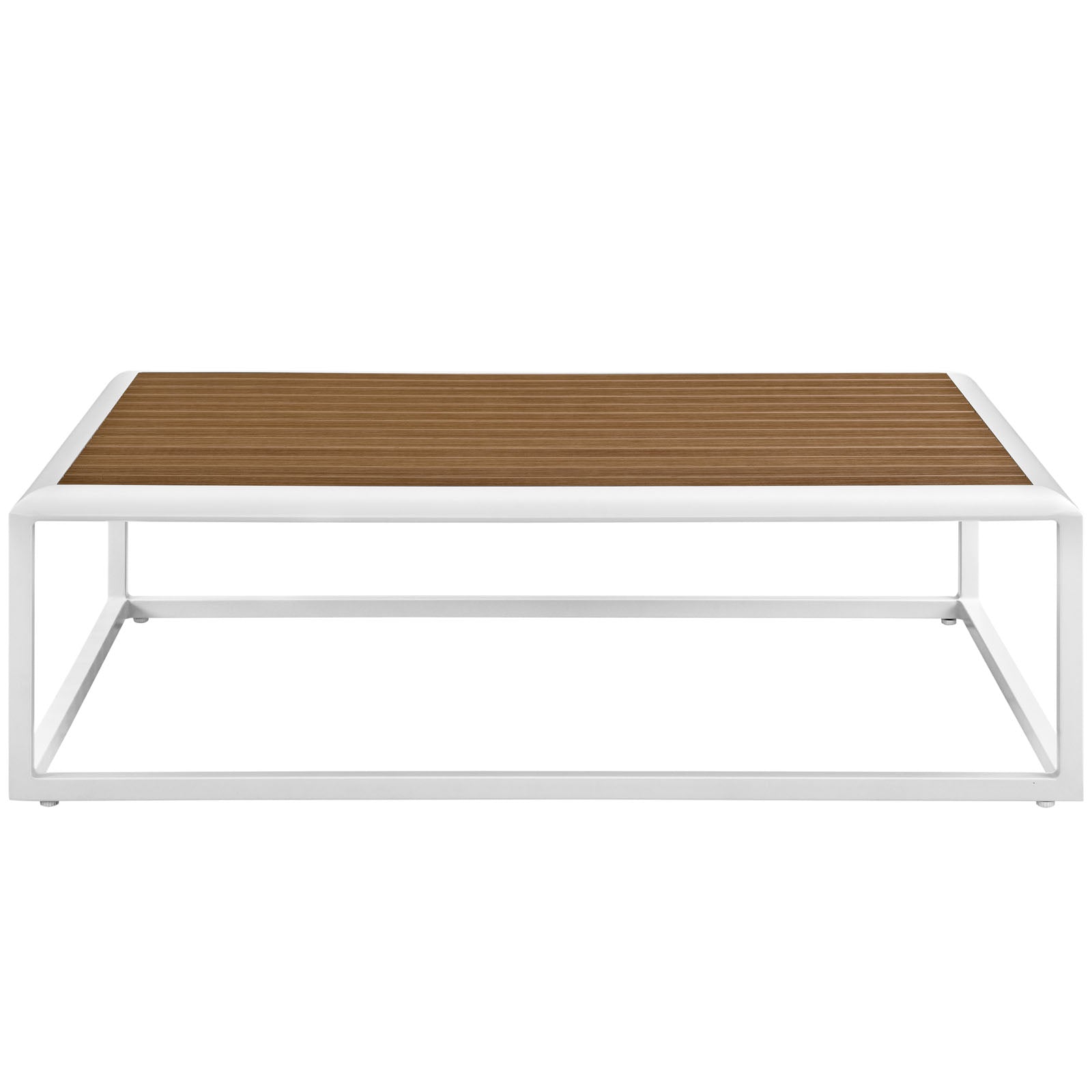 Gather family and friends for pleasant weather and good conversation with the Stance Outdoor Collection. Boasting a contemporary modern look, Stance features woven polyester fabric rope seat back and flared powder-coated aluminum frame, slatted synthetic wood tabletops, and waterproof all-weather fabric cushions with plush 5" thick, dense foam padding provide a relaxing spot to lounge. A versatile set designed for long-lasting durability, each piece in the Stance Collection can be mixed and matched and effortlessly arranged to fit the spontaneous needs of you and your guests. Cushion Thickness: 5"H. Chair Weight Capacity: 331 lbs. / Sofa Weight Capacity: 551 lbs. Set Includes: Four - Stance Armchair One - Stance Coffee Table