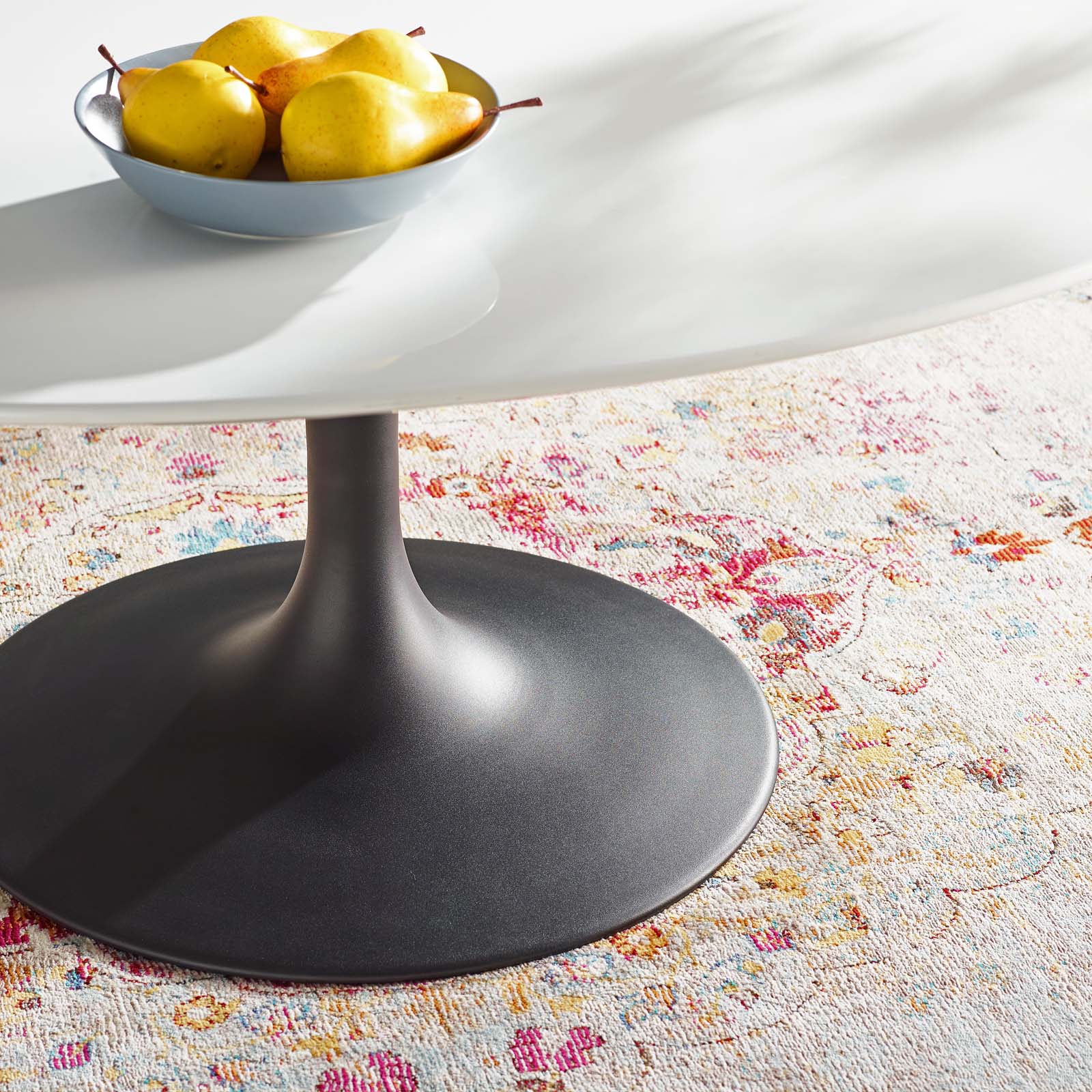 Reflecting a seamless organic shape and timeless form, the Lippa coffee table has become a symbol of modernism for over the past 60 years. Before its release, homes were filled with clunky remnants of an industrial age long gone by. But in order to advance into the new world, homes first had to transition from the traditional square table, into a piece that connoted progress. The base and dimensions are true to the original specifications, while the table�s oval-shaped white top, and tapered metal base, are carefully lacquered with a chip-resistant finish. Set Includes: One - Lippa 42" Oval-Shaped Coffee Table