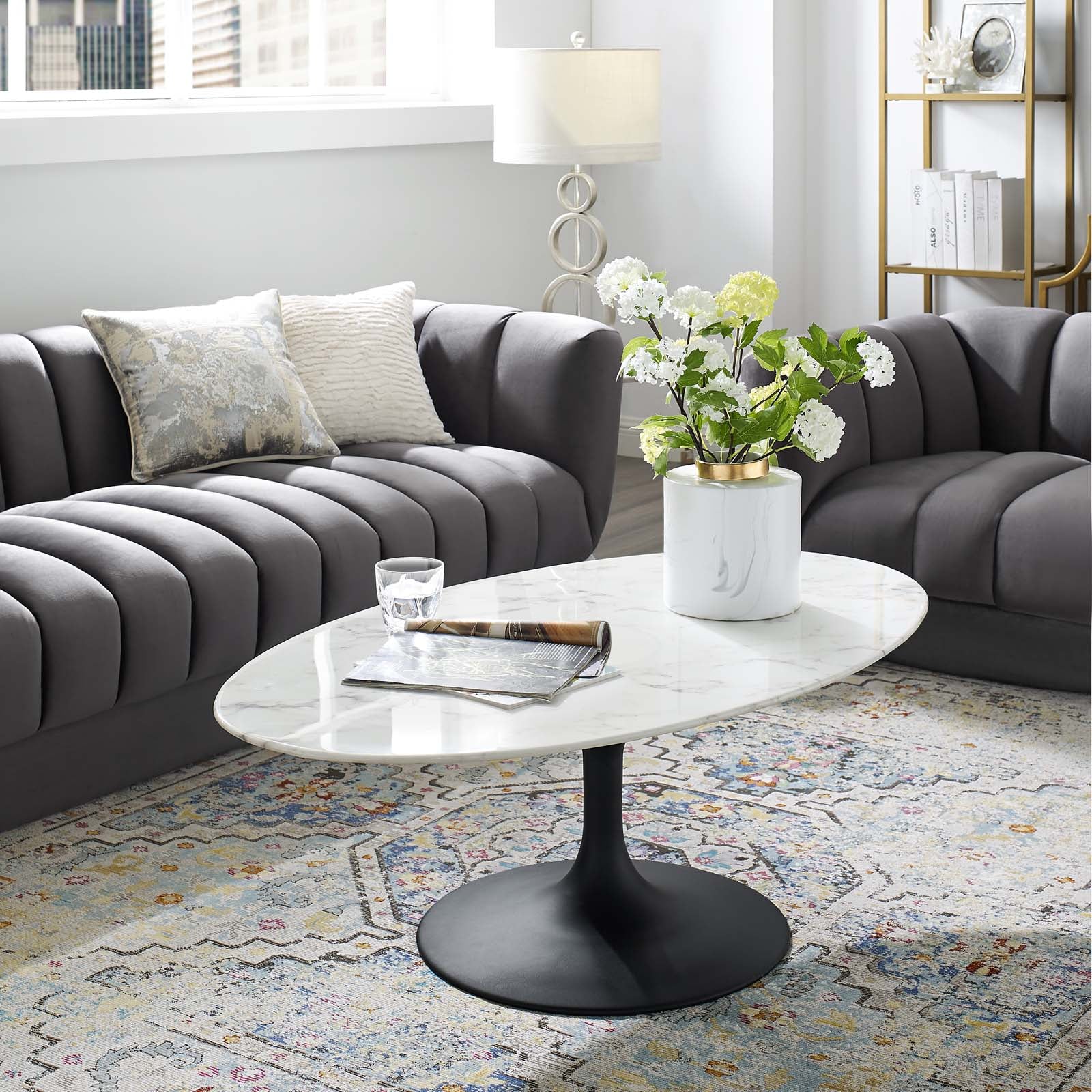 Modway Lippa 48" Oval-Shaped Artificial Marble Coffee Table EEI-3537-BLK-WHI