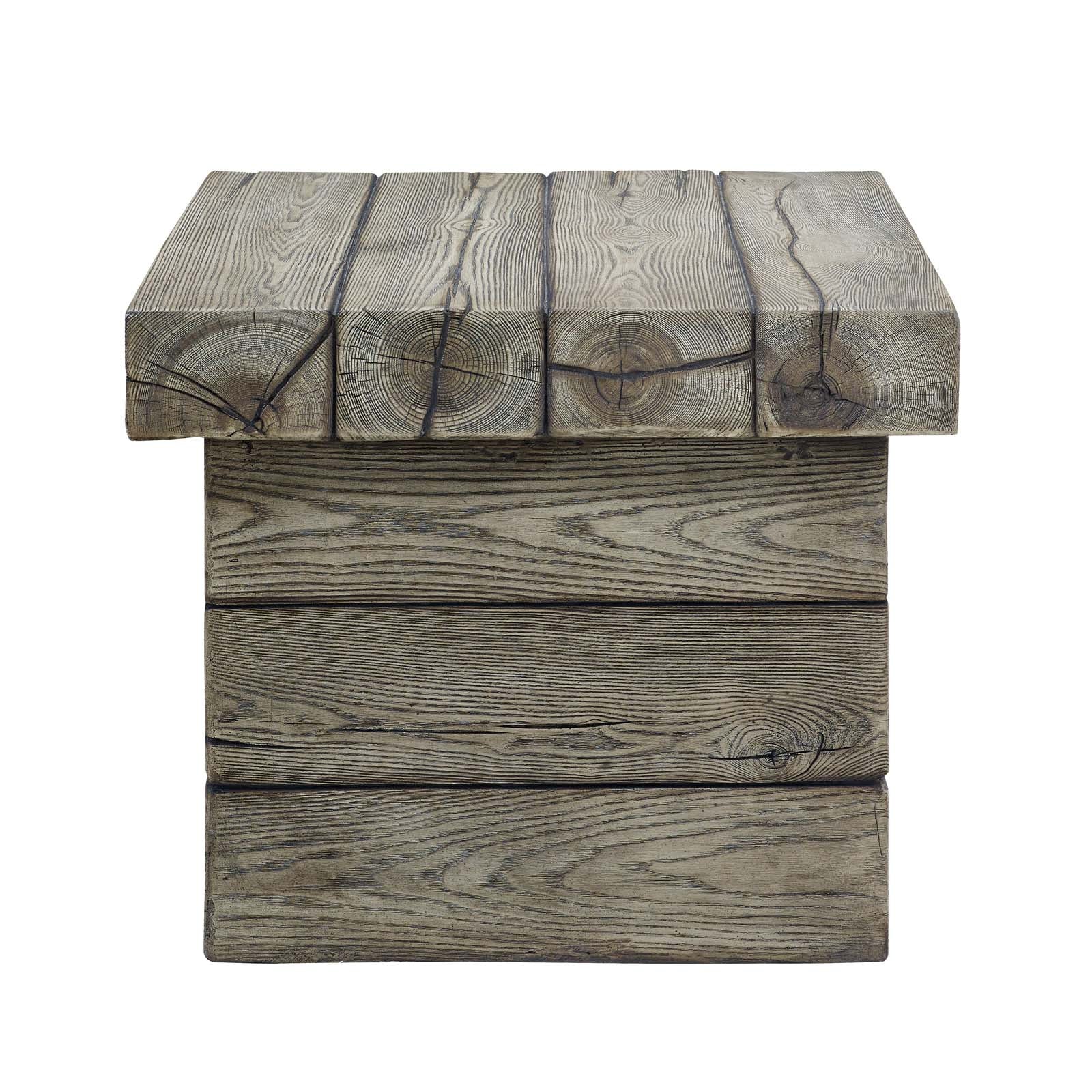 Capture a lakeside or cabin setting with the Manteo Outdoor Patio Side End Table. Solid magnesium oxide molding coated with a simulated driftwood finish create a stylish and sturdy patio side table. Enjoy your outdoor leisure time with this versatile end table for your backyard, deck, lake house, patio, poolside, or porch. Equipped with non-marking foot caps, this outdoor side table will update your patio decor with a rustic modern feel. Set Includes: One - Manteo Rustic Coastal Side Table