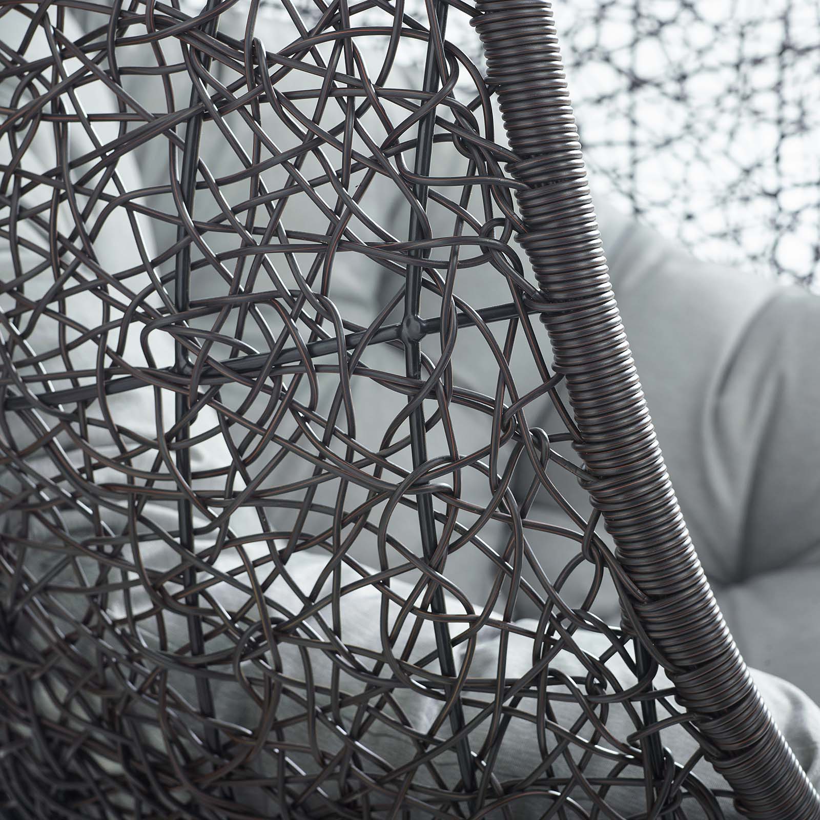 Escape to an exotic island of serenity with the Encase Outdoor Patio Swing Chair. Made with a luxurious synthetic rattan weave and plush all-weather fabric cushion, Encase Outdoor Hanging Chair makes it easy to immerse yourself in a good book. Encase Patio Swing Chair comes with a sturdy powder-coated steel frame and adjustable 78.5" inch steel chain that works well to enliven your patio, backyard, porch, or poolside decor. Stand-alone hanging swing chairs are also popularly used in indoor lounge, living, or bedroom spaces. Hide Swinging Chair is weather and UV resistant. Set Includes: One - Encase Swing Lounge Chair Without Stand