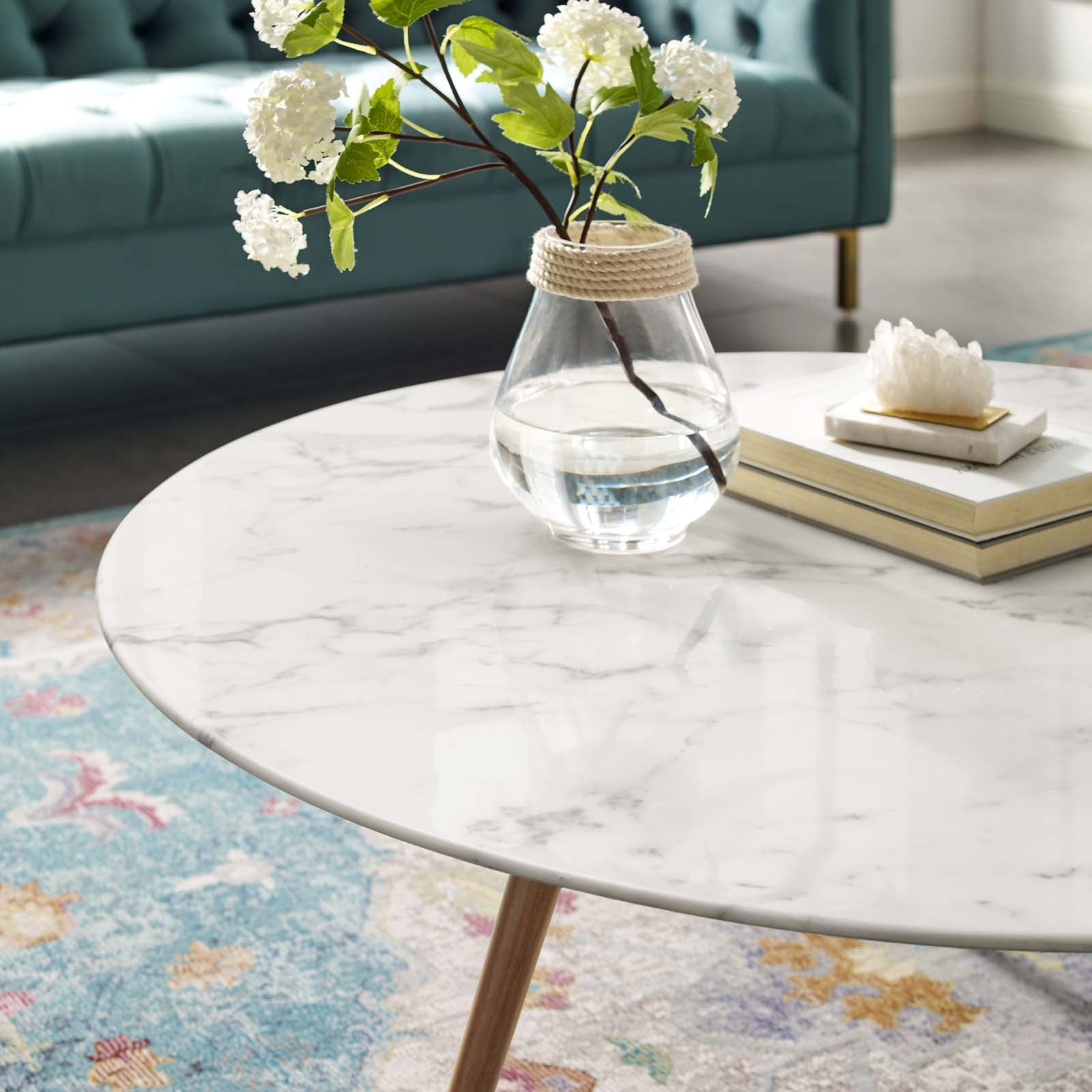 Lippa 40" Round Artificial Marble Coffee Table with Tripod Base