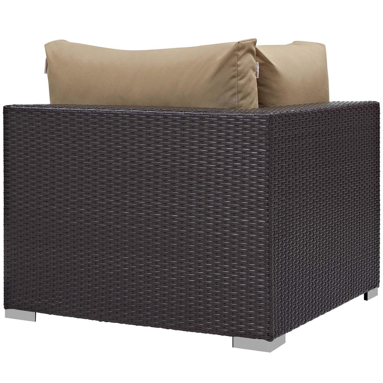 Enjoy the flickering flames of a warm fire or soak up the sunshine with family and friends with the Convene Outdoor Patio Furniture Set and Fire Table. A contemporary update to your outdoor living area, this patio set comes complete with durable aluminum frames wrapped in synthetic wicker rattan and densely padded foam cushions covered in water and UV-resistant covers that offer a serene lounging experience. The propane gas fire pit table features a magnesium oxide molding that mimics the look of rattan and wood with tempered glass beads to fill the center of the rectangular pit. Sturdy and safe, this fire table has a 40,000 BTU burner that creates a smoke-free flame, is CSA certified, easy to control, user-friendly with the turn of a knob and touch of an ignition button, and burns up to 8 hours on high or up to 16 hours on low. Designed for the backyard, patio, or poolside, this outdoor set is perfect for entertainment or relaxation and brings style and modern aesthetics to your outdoor space. Set Includes: Four - Convene Corner One - Splendor Fire Pit