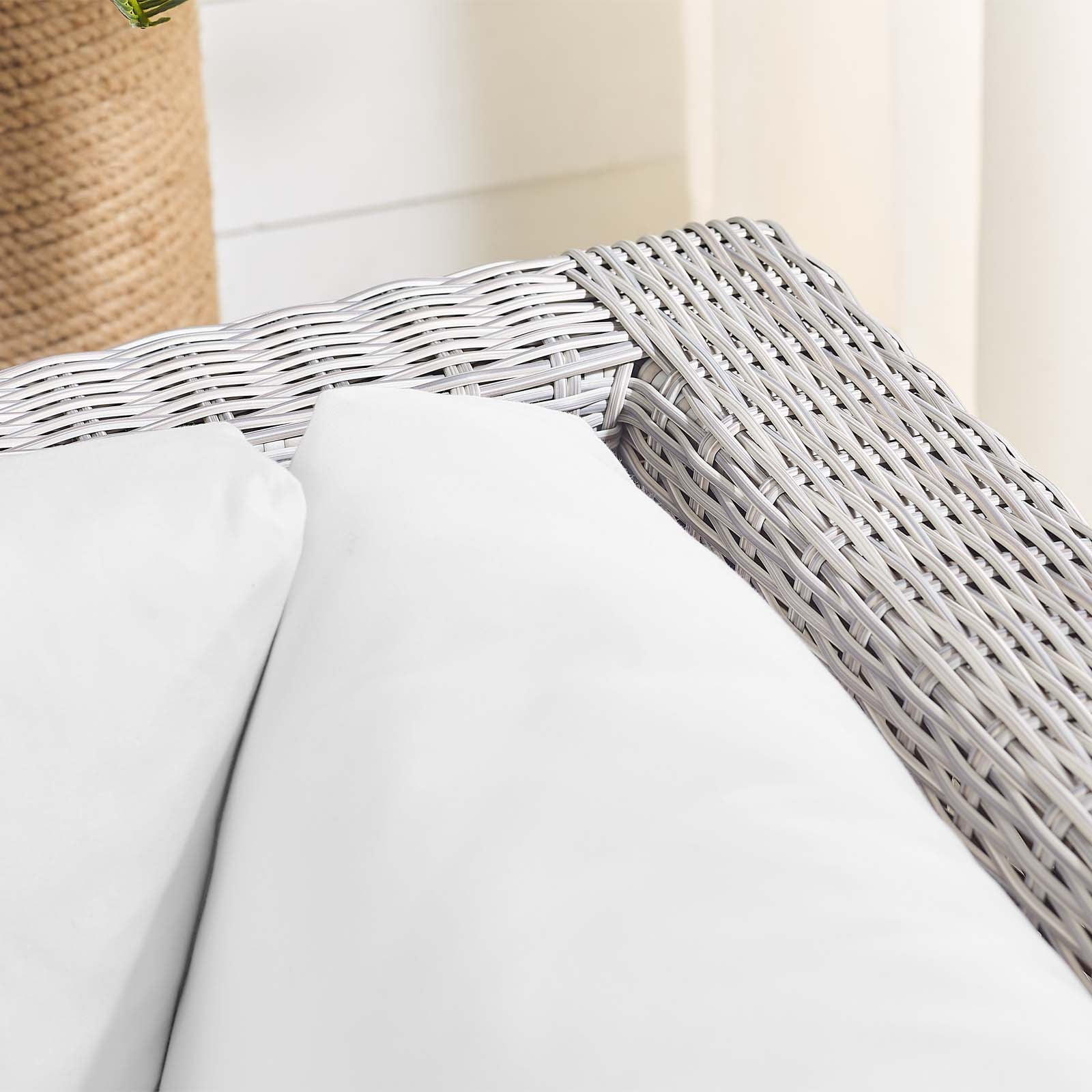 Enjoy fresh air and alfresco relaxation with the Conway Outdoor Patio Wicker Rattan Corner Sectional Sofa Chair. Wrapped in UV-resistant light gray synthetic wicker rattan, this sectional sofa piece boasts organic texture and a neutral hue that brings a calming presence to your outdoor area with a modular design that adapts to variety of configurations to suit your space. The frame of this outdoor chair is crafted with durable powder-coated aluminum and rests on L-shaped legs with plastic foot glides. Thick foam padded cushions covered with washable water-resistantSunbrella fabric covers offer a comfortable seat and affix securely to the corner chair with cord tension attachments. Trending aesthetics and a classic design define this outdoor patio furniture collection making it a beautiful addition to any outdoor space including the backyard, patio, porch, balcony, or poolside. Assembly required. Patio Chair Weight Capacity: 300 lbs. Set Includes: One - ConwaySunbrella Corner Chair