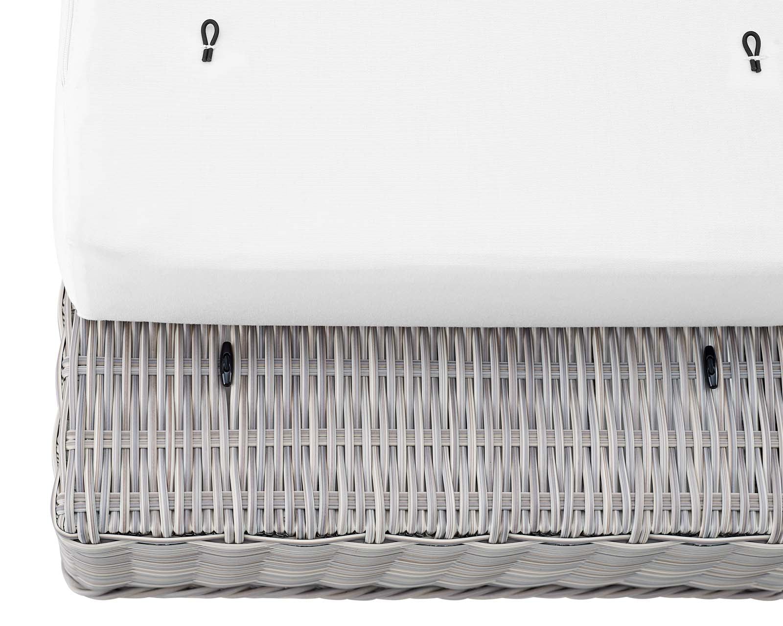 Enjoy fresh air and alfresco relaxation with the Conway Outdoor Patio Wicker Rattan Ottoman. Wrapped in UV-resistant light gray synthetic wicker rattan, this patio ottoman boasts organic texture and a neutral hue that brings a calming presence to your outdoor space. The frame of this outdoor ottoman is crafted with durable powder-coated aluminum and rests on L-shaped legs with plastic foot glides. A thick foam padded cushion covered with a washable water-resistant cover offers a comfortable seat and affixes securely to the ottoman with a cord tension attachment. Trending aesthetics and a classic design define this outdoor patio furniture collection making it a beautiful addition to any outdoor space including the backyard, patio, porch, balcony, or poolside. Assembly required. Patio Ottoman Weight Capacity: 300 lbs. Set Includes: One - ConwaySunbrella Ottoman