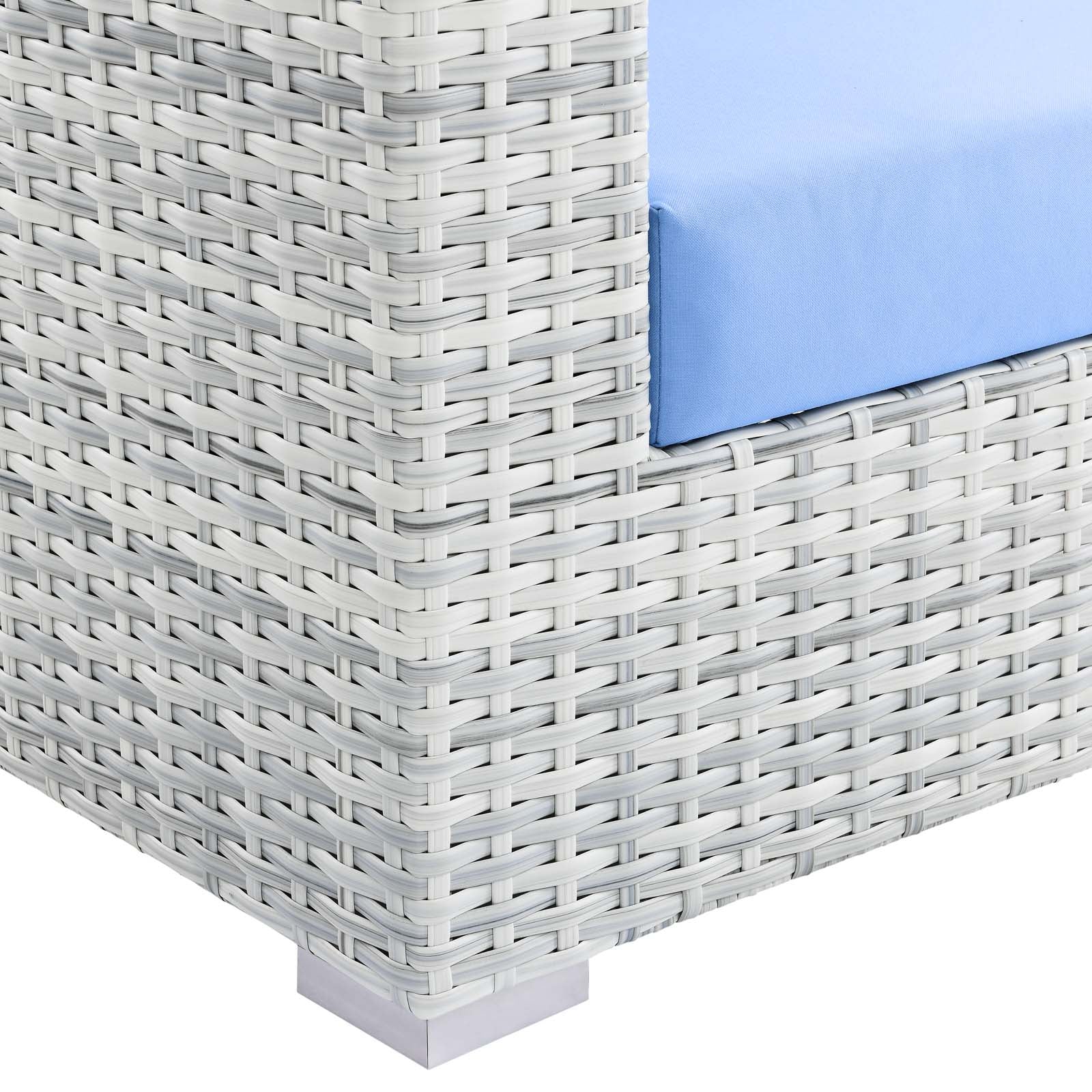 Gather stages of sensitivity with the Convene outdoor sectional series. Made with a synthetic rattan weave and a powder-coated aluminum frame, Convene is a versatile left-arm loveseat from an outdoor collection that shifts and combines according to the spontaneous needs of the moment. Outfitted with all-weather fabric cushions, the Convene Left-Arm Loveseat leaves a positive impression on friends and family while enhancing your patio, backyard, or poolside retreat with palpable distinction. Set Includes: One - Convene Left-Arm Loveseat
