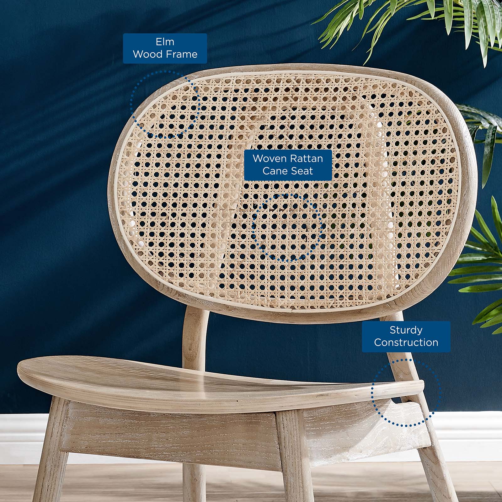 Inspiring the smell of freshly brewed coffee and warm pastries in your home, the Malina Wood Dining Chair transports you to a morning spent in a cozy cafe with its modern farmhouse style and coastal charm. Featuring a rounded frame and airy design with a woven rattan cane detail, this dining chair is crafted with a solid elm wood frame and rests atop non-marking foot caps to protect your flooring. This wood chair is a versatile choice for the modern home making a statement in the dining room or as an accent chair in the living room, office, entryway, or other seating area. Weight Capacity: 330 lbs. Set Includes: One - Malina Wood Dining Side Chair