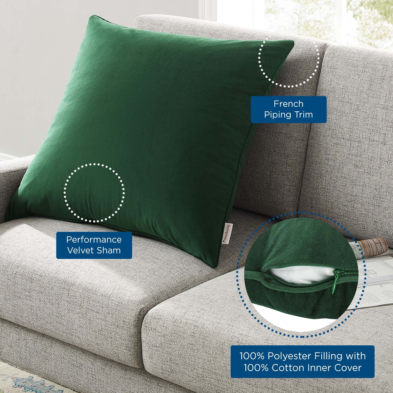 Incorporate a pop of color and texture into your home decor with the Enhance Performance Velvet Throw Pillow. With French piping along the edges, this accent pillow is perfect for a sofa, loveseat, armchair, bench, or bed. Bringing rich textiles to your living space or bedroom, this accent pillow wears a beautiful performance velvet sham that's soft to the touch. The insert of this square pillow is stuffed with plush polyester filling and complete with a 100% cotton inner cover. Set Includes: One - Enhance 24" Throw Pillow