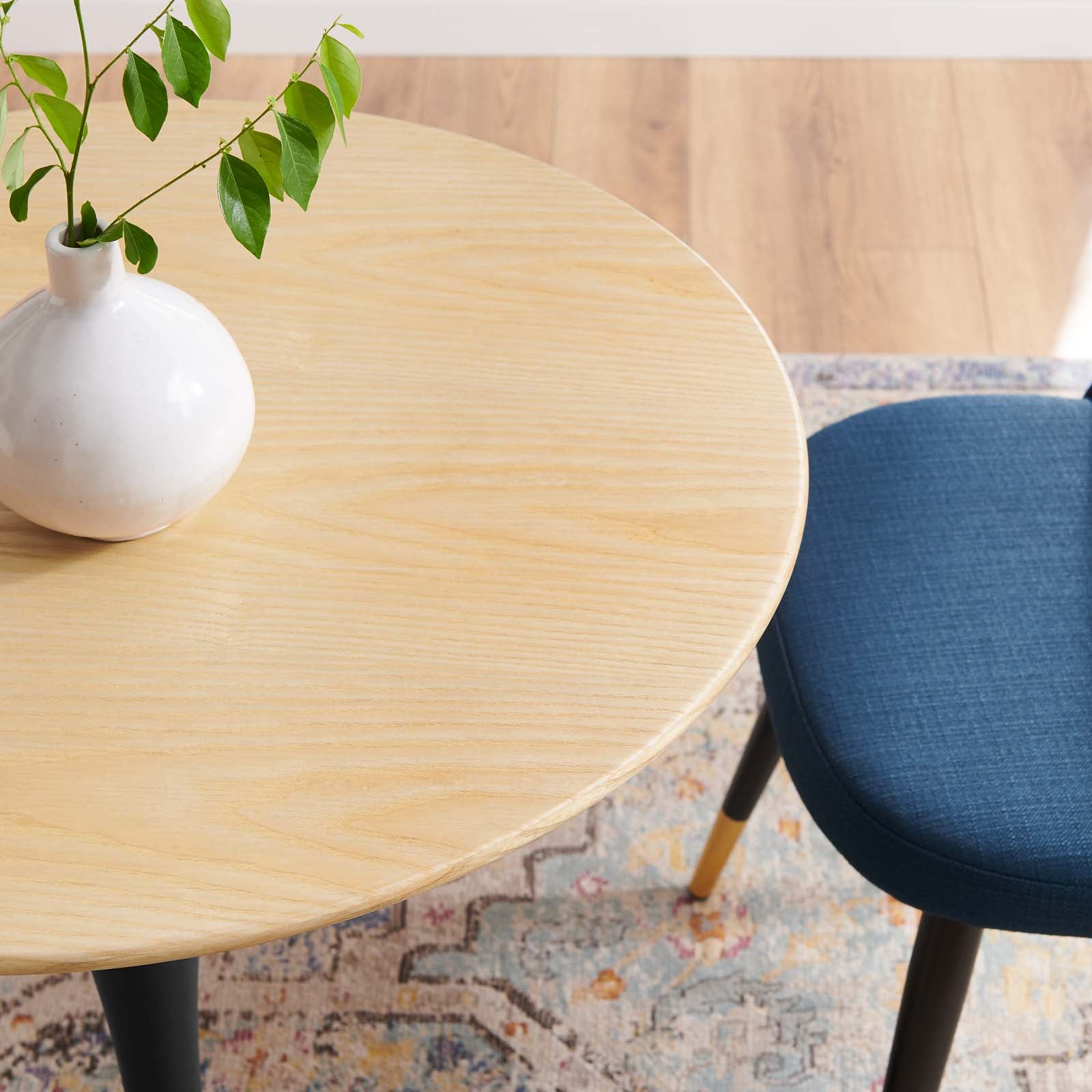 Reflecting a seamless organic shape and timeless form, the Lippa dining table has become a symbol of modernism for over the past 60 years. Before its release, homes were filled with clunky remnants of an industrial age long gone by. But in order to advance into the new world, homes first had to transition from the traditional square table, into a piece that connoted progress. The base and dimensions are true to the original specifications, while the table’s circular MDF top has an easy-to-clean wood grain veneer, and the metal tapered base features a black powder-coated finish. Set Includes: One - Lippa 28" Dining Table