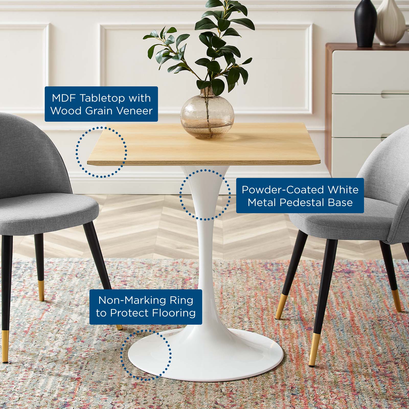 Reflecting a seamless organic shape and timeless form, the Lippa side table has become a symbol of modernism for over the past 60 years. Before its release, homes were filled with clunky remnants of an industrial age long gone by. But in order to advance into the new world, homes first had to transition from the traditional square table, into a piece that connoted progress. The base and dimensions are true to the original specifications, while the table’s square MDF top has an easy-to-clean wood grain veneer, and the metal tapered base features a powder-coated finish. Set Includes: One - Lippa 28" Square Dining Table