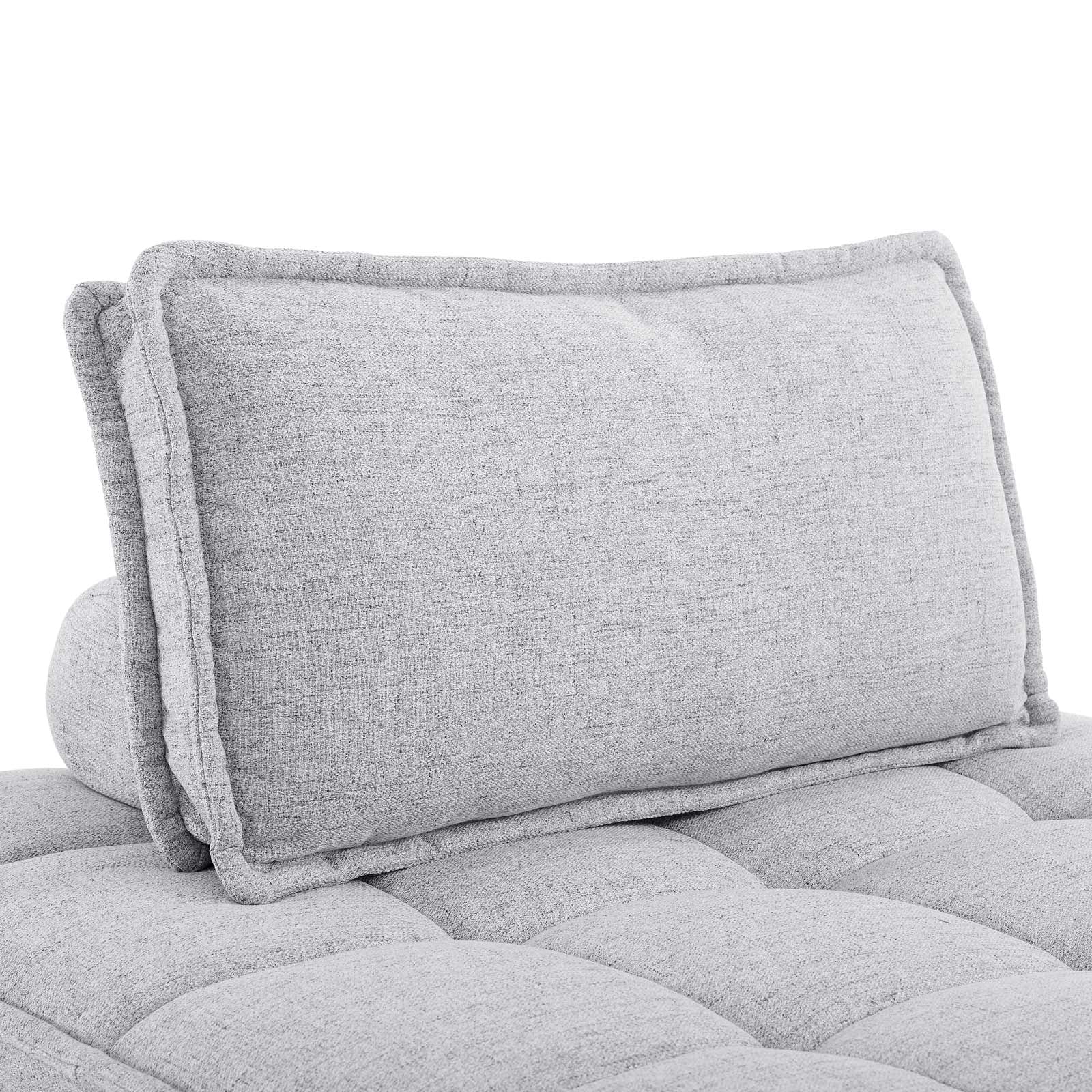 Sprawl out amidst comfort and style on the Saunter Tufted Fabric 4-Piece Sectional Sofa. With square biscuit tufting, French piping detail, and soft polyester upholstery, this sectional sofa collection brings tailored style to your living space or lounge area with its charming low profile silhouette. A removable bolster pillow supporting a seat back cushion offers a comfortable place to rest while watching TV, relaxing, or entertaining. Dense foam padding and a sinuous spring support system grant a premium seating experience for all occasions. This four-piece sectional sofa rests atop L-shaped rubberwood legs with non-marking foot caps. Set Includes: 4 Armless Chairs; Weight Capacity Each Chair: 300 lbs. Set Includes: Four - Saunter Tufted Armless Chair