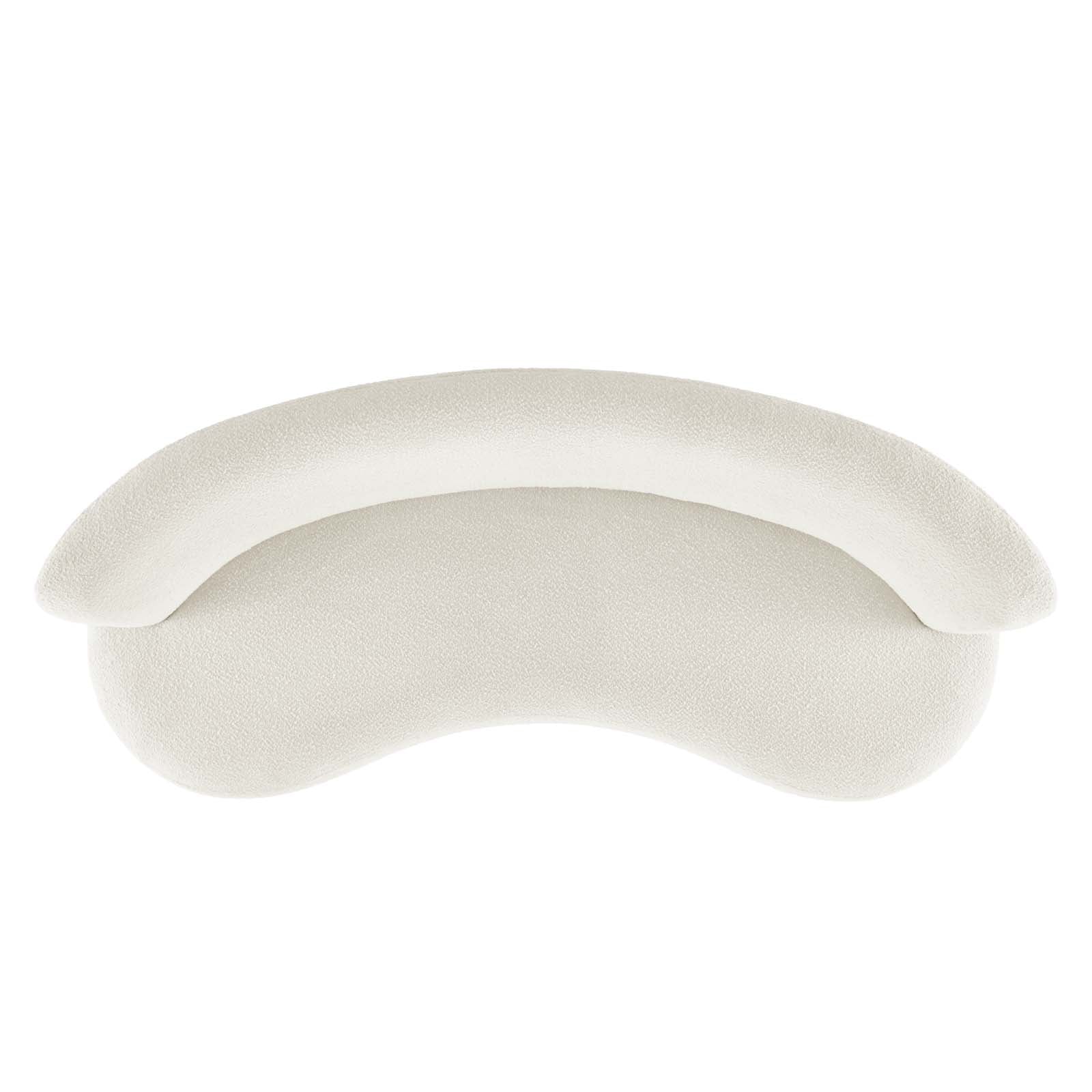 Invite on-trend style to your living space with the organic curves and nubby texture of the Kindred Boucle Upholstered Sofa. Covered in a beautiful boucle fabric made with looped yarns, this couch brings appreciated interest to a living room, office, bedroom, or lounge area. Dense foam padding and a webbed support system create a premium seating experience perfect for relaxing or enteraining. Resting on a brushed gold stainless steel base, this boucle sofa stuns in the modern home or apartment. Weight Capacity: 992 lbs. Set Includes: One - Kindred Sofa