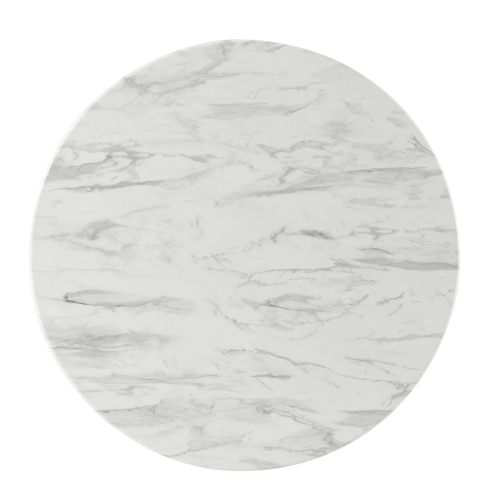 Enjoy dinner with friends or daily mealtime amidst geometric detail and modern style with the Gallant Artificial Marble Performance Dining Table. With a seamless organic shape, this round dining table rests atop splayed and tapered legs crafted from solid rubberwood with angular accents for added interest. This kitchen table is complete with an artificial marble tabletop that is easy to clean and maintain. This performance tabletop is resistant to stains, scratches, UV light, and small burns. A striking addition to the modern home, Gallant emboldens decor in the dining room or kitchen. Assembly required. Set Includes: One - Gallant 36" Round Performance Dining Table