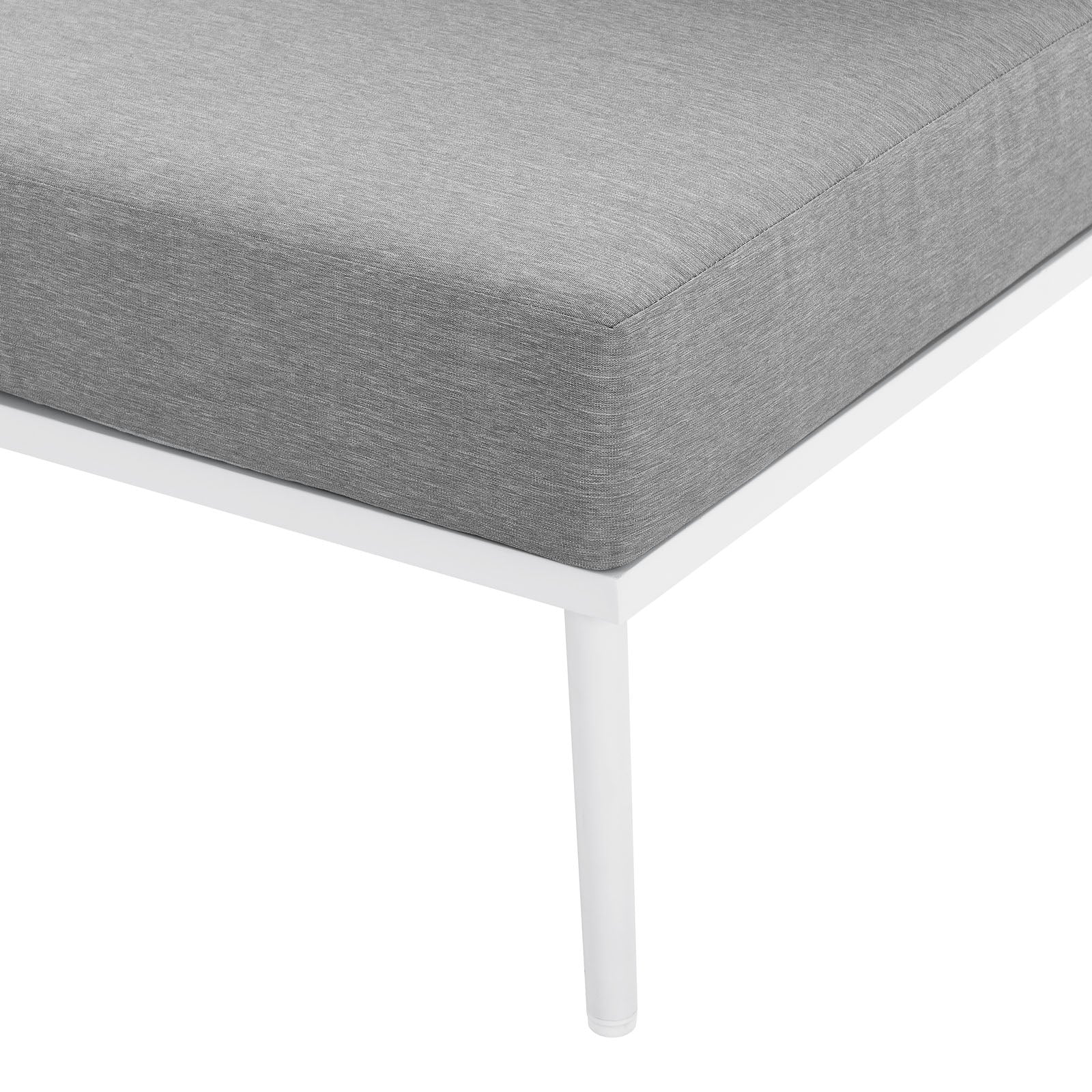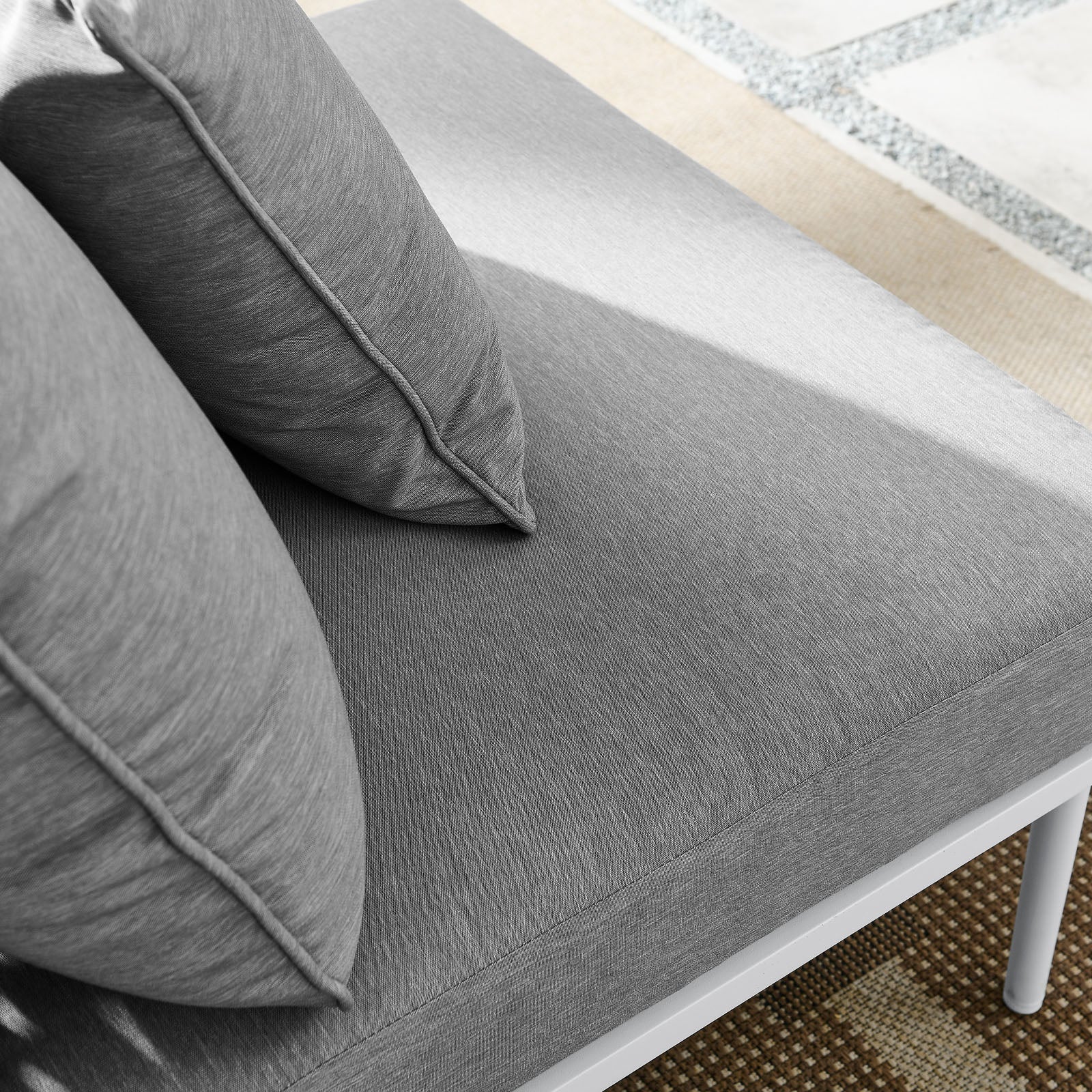 Gather family and friends for pleasant weather and good conversation with the Stance Outdoor Patio Armless Chair. Boasting a contemporary modern look, the Stance Armless Chair features a woven polyester fabric rope seat back and flared powder-coated aluminum frame, while water resistant all-weather fabric cushions with dense foam padding provide a relaxing spot to lounge. This is a versatile patio armless chair designed for long-lasting durability. Each piece in the Stance Outdoor Collection can be mixed and matched and effortlessly arranged to fit the spontaneous needs of you and your guests. Stance includes non-marking, height-adjustable foot caps. Assembly Required. Chair Weight Capacity: 331 lbs. Set Includes: One - Stance Aluminum Armless Chair