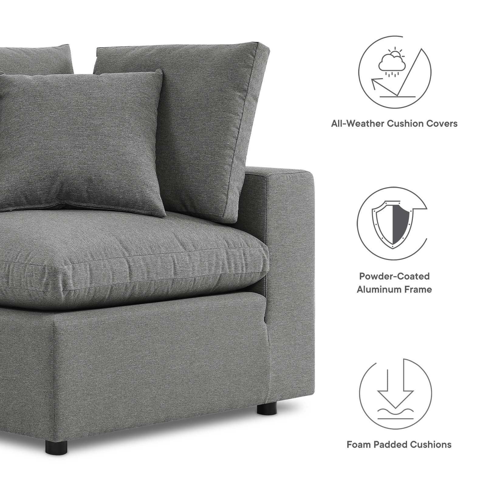 A haven for cozy relaxation right in your own backyard, Commix features plush comfort, a clean-lined design, and a spacious profile that makes an attractive statement on the porch, patio, or by the poolside. Made for sprawling out in the sun or curling up with a good book, this patio loveseat features generously padded cushions covered in water-repellent and UV-resistant covers making them ideal for your outdoor space. This outdoor two-seater sofa features an all-weather construction with a powder-coated aluminum frame and non-marking foot caps to protect flooring surfaces. Beckoning guests to sit and stay a while, the Commix Outdoor Patio Collection is perfect for al fresco entertaining or lounging amidst warm weather. Each Seat Weight Capacity: 300 lbs. Set Includes: Two - Commix Overstuffed Corner Chair