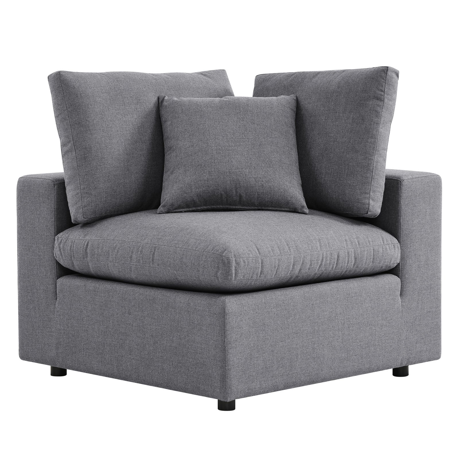 A haven for cozy relaxation right in your own backyard, Commix features plush comfort, a clean-lined design, and a spacious profile that makes an attractive statement on the porch, patio, or by the poolside. Made for sprawling out in the sun or curling up with a good book, this outdoor patio sectional sofa features generously padded cushions covered in water-repellent, UV-resistant Sunbrella® fabric covers making them ideal for your outdoor space. This outdoor sectional sofa features an all-weather construction with a powder-coated aluminum frame and non-marking foot caps to protect flooring surfaces. Beckoning guests to sit and stay a while, the Commix Outdoor Patio Collection is perfect for al fresco entertaining or lounging amidst warm weather. Set Includes: 2 Armless Chairs, 1 Ottoman, 1 Corner Chair. Each Chair Weight Capacity: 300 lbs. Set Includes: One - Commix Sunbrella® Corner Chair One - Commix Sunbrella® Ottoman Two - Commix Sunbrella® Armless Chair