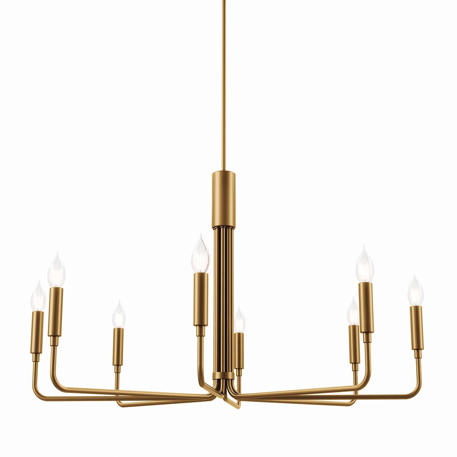 Illuminate your living space with the artful elegance of the Rekindle 8-Light Chandelier that complements a variety of decors from mid-century modern to minimalist contemporary. A timeless piece for your living room, dining room, entryway, or office space, this chandelier light features eight sleek arms that extend out from a cylindrical centerpiece with ceramic lamp holders to host exposed light bulbs. Compatible with sloped ceilings, Rekindle has a ceiling canopy with a swivel adaptor and features a five piece, height-adjustable hanging rod to suit a range of ceiling heights. The Rekindle Light Fixture is ETL listed for damp locations and requires eight E12 light bulbs 60W max or LED equivalent (not included). Luminaires that are ÒSuitable for Damp LocationsÓ are approved for areas that are regularly exposed to moisture and condensation. Professional installation required. Set Includes: One - Rekindle 8-Light Chandelier