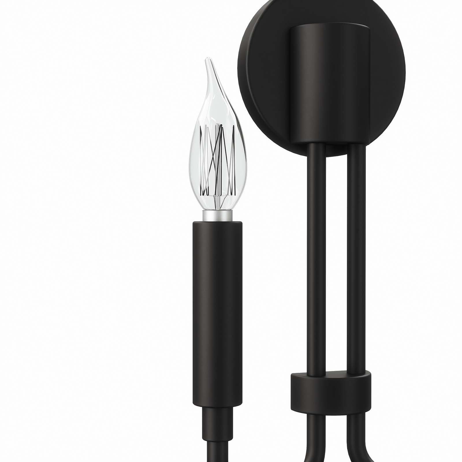 Illuminate your living space with the artful elegance of the Rekindle 2-Light Wall Sconce that complements a variety of decors from mid-century modern to minimalist contemporary. A timeless piece for a living room, dining room, entryway, hallway, home office, or bathroom, this sconce light features two upturned arms extending out from a cylindrical centerpiece and round backplate with ceramic lamp holders to host exposed light bulbs. The Rekindle Light Fixture is damp rated and requires two E12 light bulbs 60W max or LED equivalent (not included). Professional installation required. Set Includes: One - Rekindle 2-Light Wall Sconce