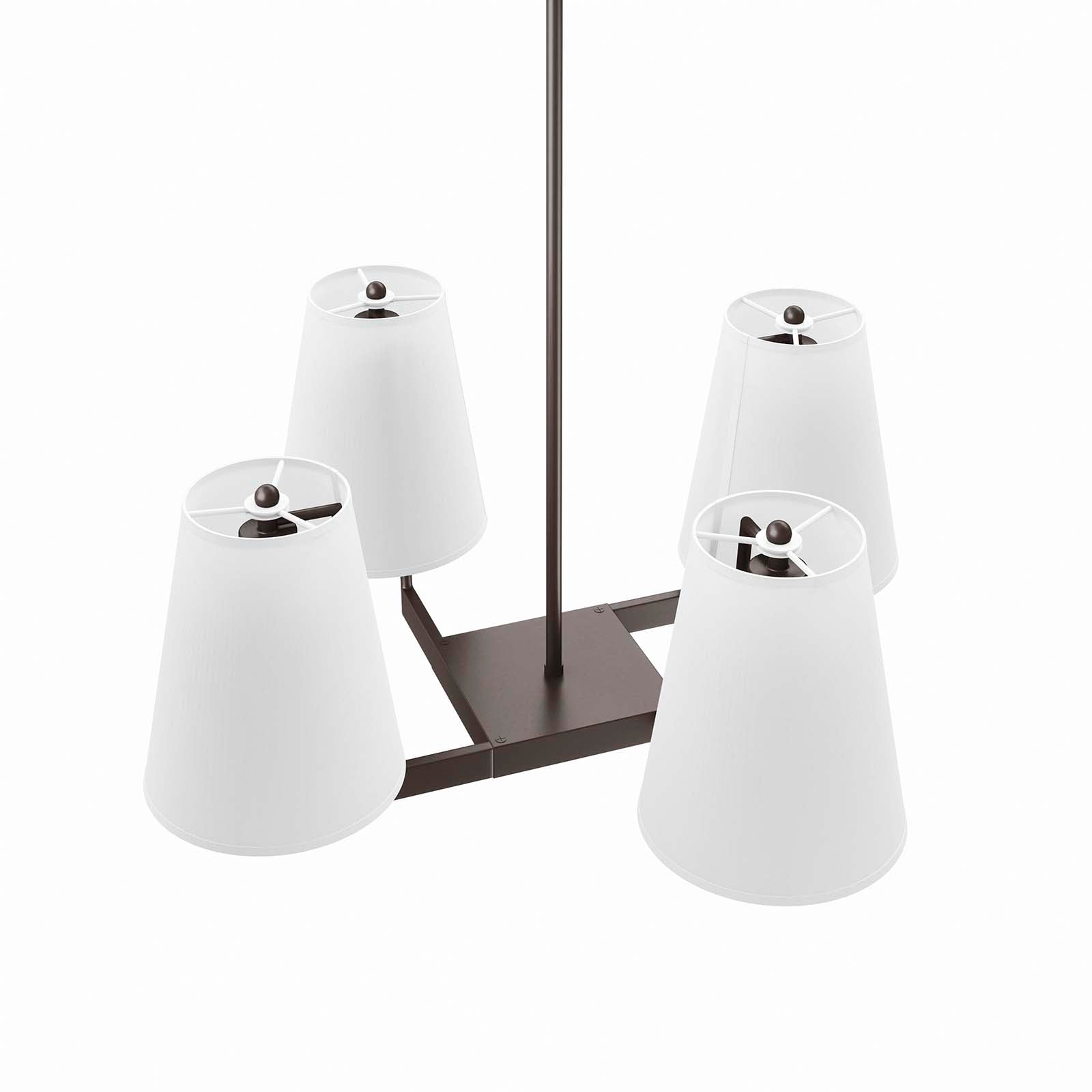 Set the stage for purposeful illumination with the Mercer 4-Light Pendant in your living room, dining room, bathroom, entryway, bedroom, or office space. Compatible with sloped ceilings, Mercer has a ceiling canopy with a swivel adaptor and features a five piece, height-adjustable hanging rod to suit a range of ceiling heights. Four fabric cone shades infuse the Mercer Pendant Light with modernism and contemporary style. This pendant light is ETL listed for damp locations like in the bathroom and requires four E26 bulbs 60W max or LED equivalent (not included). Luminaires that are ÒSuitable for Damp LocationsÓ are approved for areas that are regularly exposed to moisture and condensation. Professional installation required. Set Includes: One - Mercer 4-Light Pendant Light