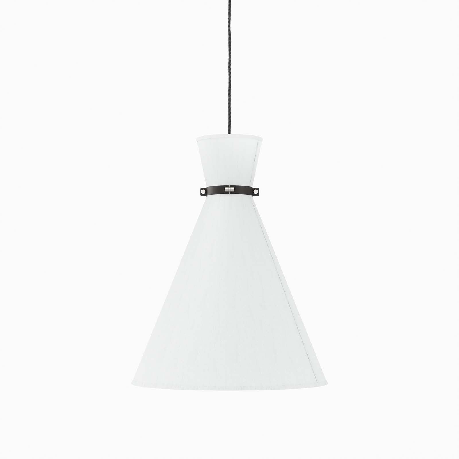 The Starlight 1-Light Pendant radiates a warm glow across its surroundings. Designed to give purposeful task lighting in a bathroom, bedroom, dining room, kitchen, entryway, or other living space, this hanging light steals the show with its contemporary hourglass shape. The fabric shade features a matte black neck cinch. Compatible with sloped ceilings, this pendant light is suspended by a ceiling canopy and an adjustable fabric cable to accomodate a range of ceiling heights. This light fixture requires one E26 bulb 60W max or LED equivalent (not included). Damp rated for use in the bathroom. Professional installation required. Set Includes: One - Starlight 1-Light Pendant Light