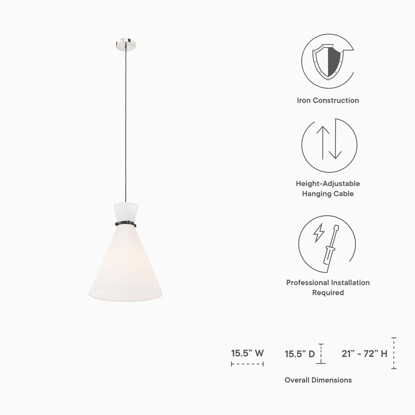 • Bullets: Modern 1-Light Pendant Fabric Shade Flush Mount Ceiling Canopy Height-Adjustable Hanging Rods Requires 1 E26 60W Lightbulb Bulb Not Included Professional Installation Required