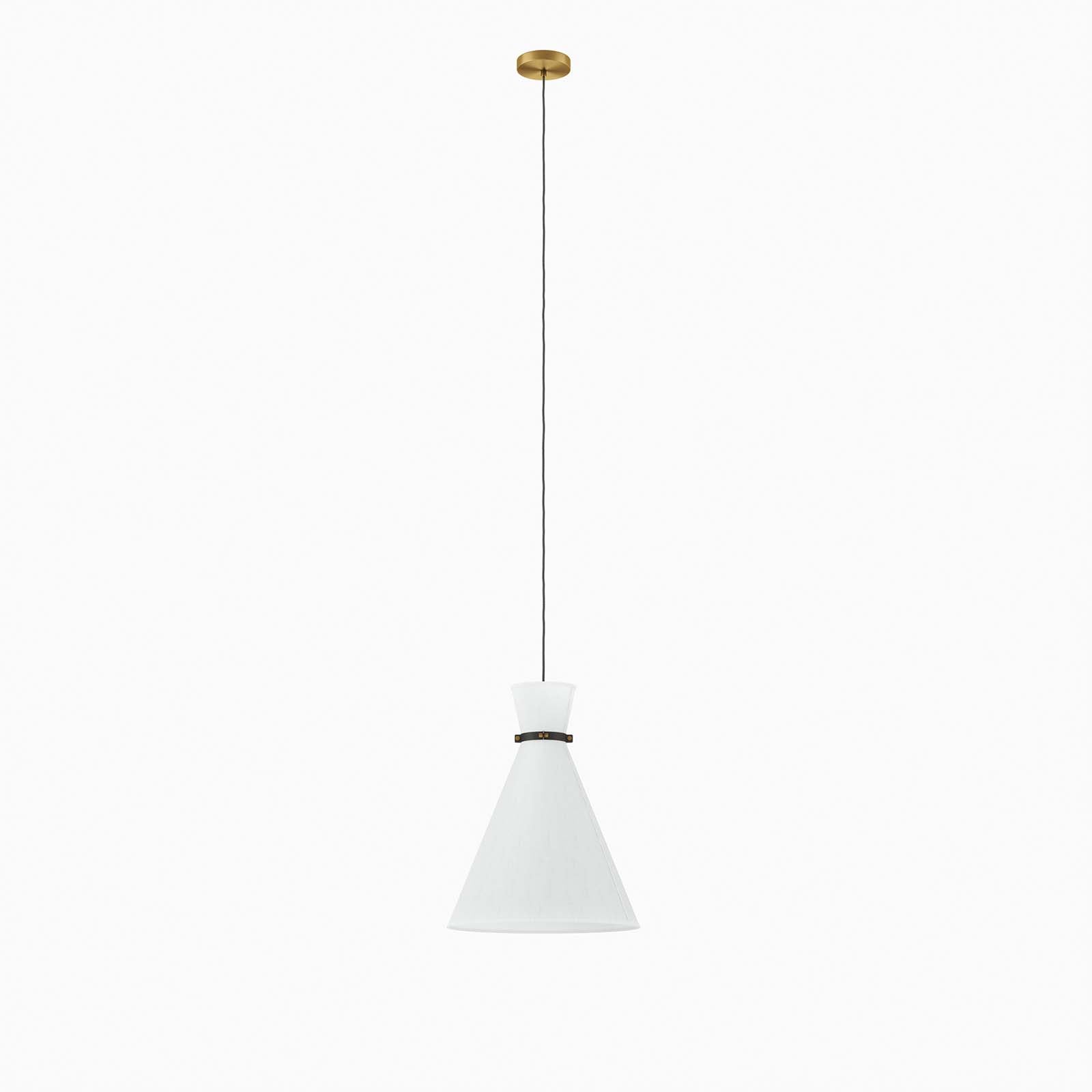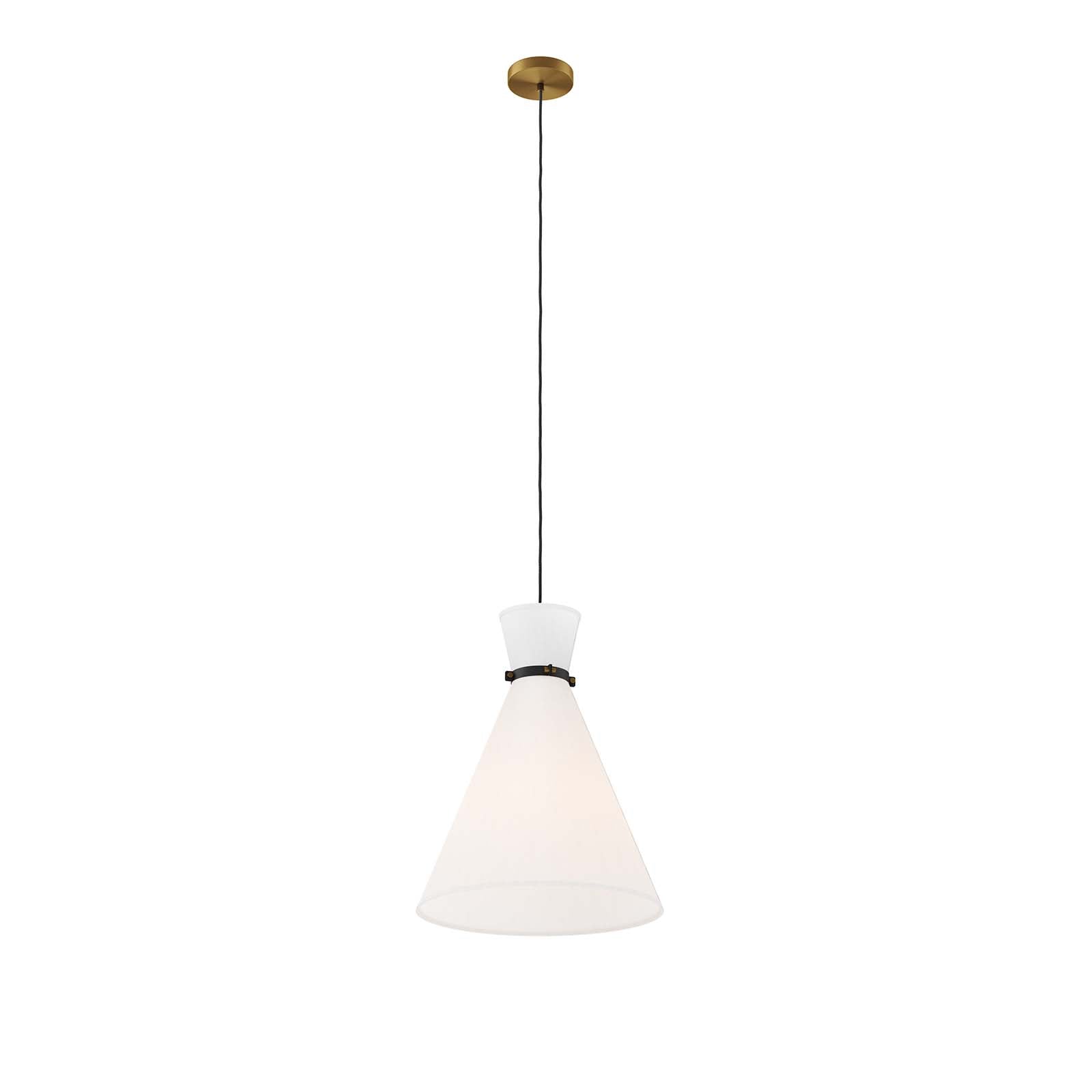The Starlight 1-Light Pendant radiates a warm glow across its surroundings. Designed to give purposeful task lighting in a bathroom, bedroom, dining room, kitchen, entryway, or other living space, this hanging light steals the show with its contemporary hourglass shape. The fabric shade features a matte black neck cinch. Compatible with sloped ceilings, this pendant light is suspended by a ceiling canopy and an adjustable fabric cable to accomodate a range of ceiling heights. This light fixture requires one E26 bulb 60W max or LED equivalent (not included). Damp rated for use in the bathroom. Professional installation required. Set Includes: One - Starlight 1-Light Pendant Light