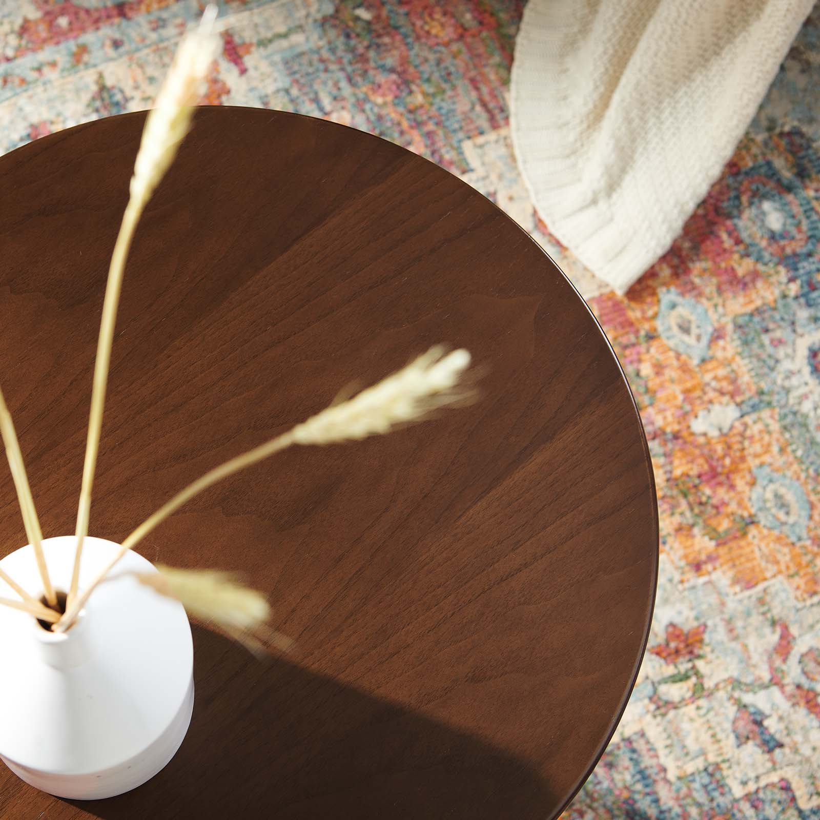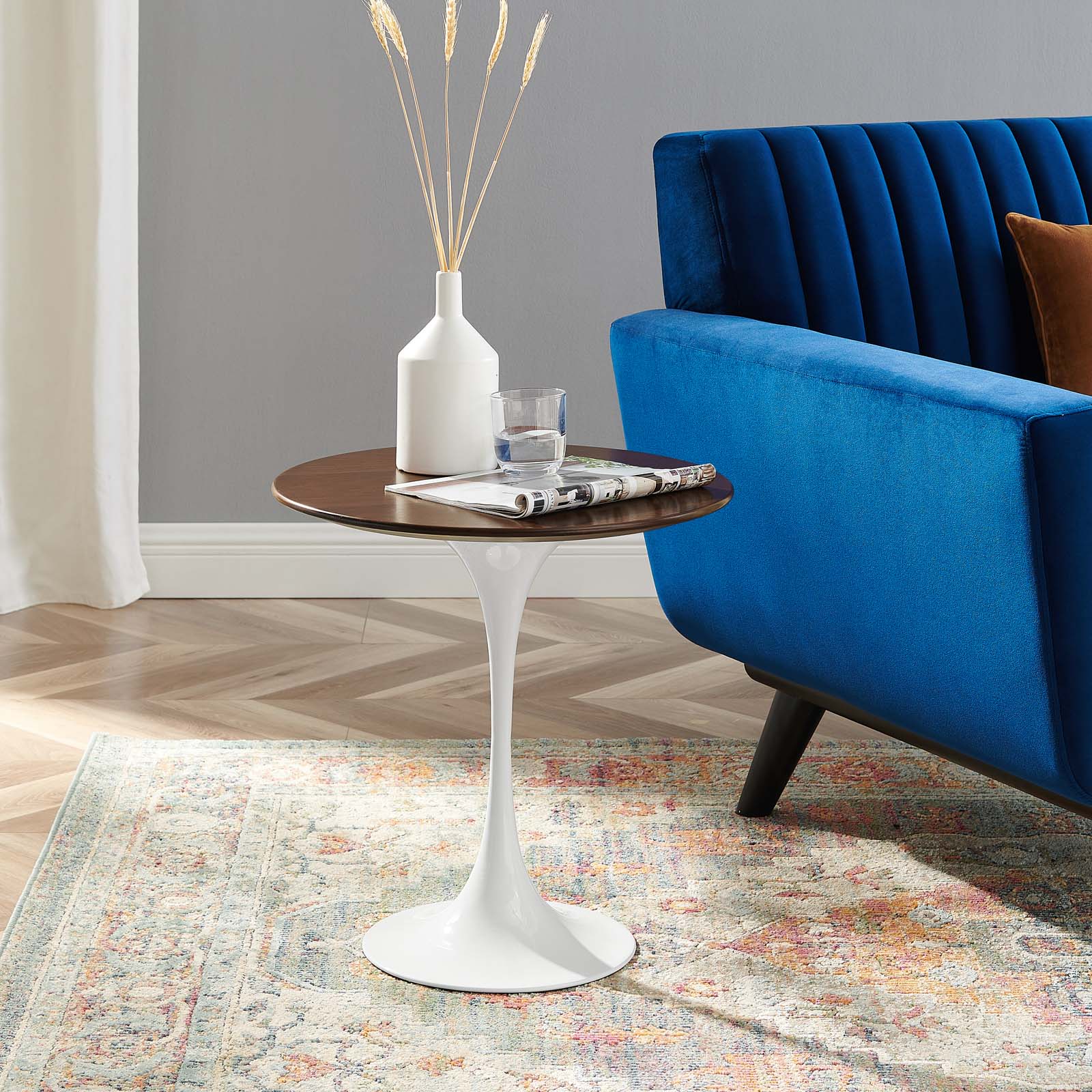Reflecting a seamless organic shape and timeless form, the Lippa Side Table has become a symbol of modernism for over the past 60 years. Before its release, homes were filled with clunky remnants of an industrial age long gone by. But in order to advance into the new world, homes first had to transition from the traditional square table, into a piece that connoted progress. The base and dimensions are true to the original specifications, while the table’s round MDF top has an easy-to-clean wood grain veneer and rests on a metal tapered base with a glossy finish. Set Includes: One - Lippa 20" Round Side Table