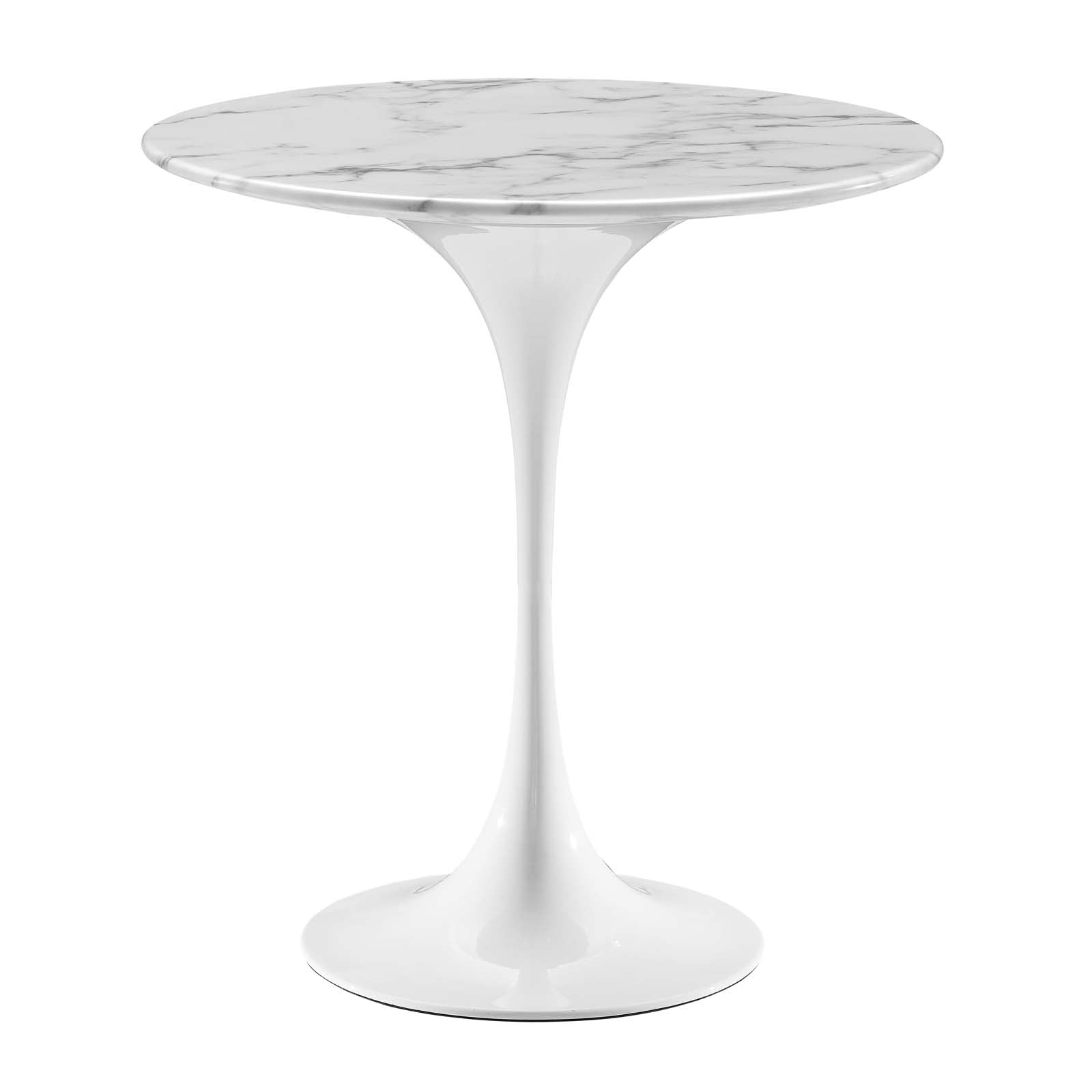 Reflecting a seamless organic shape and timeless form, the Lippa Side Table has become a symbol of modernism for over the past 60 years. Before its release, homes were filled with clunky remnants of an industrial age long gone by. But in order to advance into the new world, homes first had to transition from the traditional square table, into a piece that connoted progress. The base and dimensions are true to the original specifications, while the table’s round artificial marble top rests atop a metal tapered base with a glossy finish. Set Includes: One - Lippa 20" Round Artificial Marble Side Table