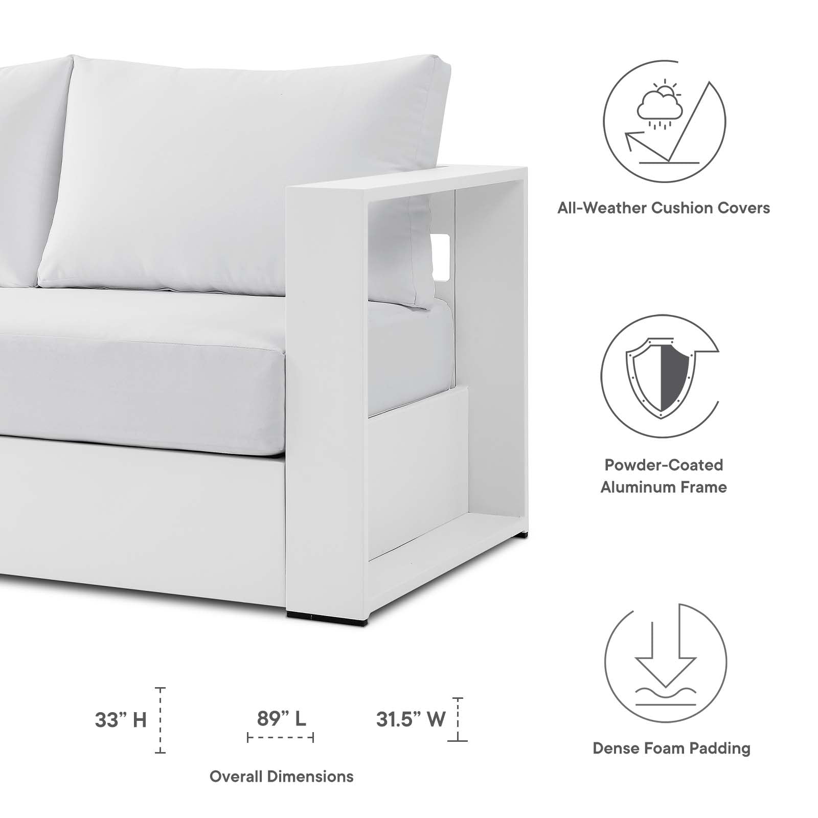 Enliven your alfresco spaces with the Tahoe Aluminum 2-Piece Outdoor Patio Set. Constructed with well-crafted, durable powder-coated aluminum and dispensing contemporary elegance, this waterproof sofa and coffee table patio set elegantly complements your outdoor lounge spaces. Enjoy lounging poolside with this 2-piece sunproof patio set featuring water-resistant, fabric-covered seat and backrest. With dense foam padding for sustaining comfort and removable, stain-resistant sofa cushions, this poolside set is low maintenance and high performing. Equipped with non-marking foot glides to protect your deck or patio floors, this modern 2-piece patio set comes with easy-to-follow assembly instructions. Sofa Weight Capacity: 993 lbs. Set Includes: One - Tahoe Coated CoffeeTable One - Tahoe Coated Sofa