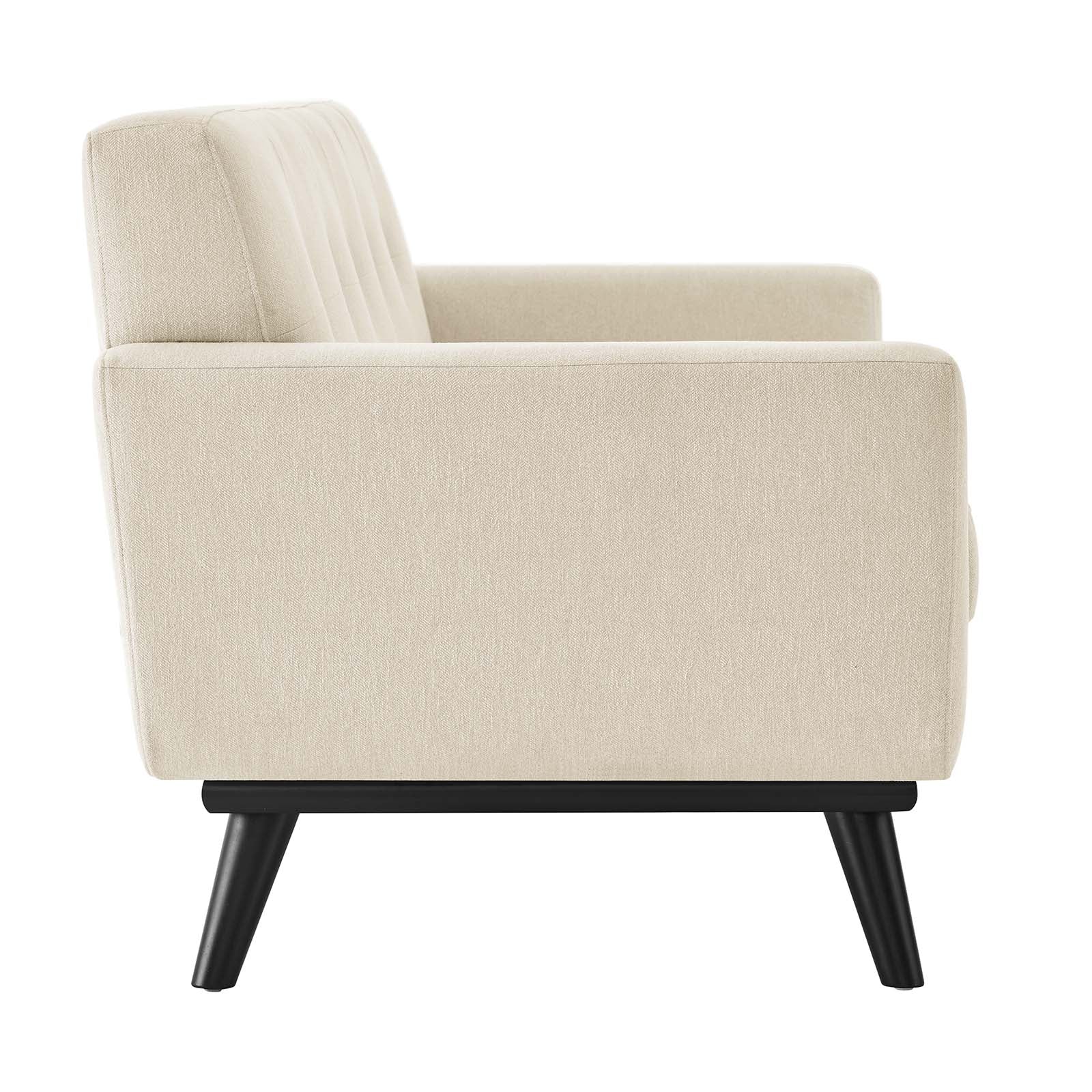 Gently sloping curves and plush seat cushion create a favorite lounging spot. Whether plopping down after a long day at work, settling in with coffee and brunch, or entering a spirited discussion with friends, the Engage Loveseat is a welcome presence in your home. Three tufted buttons create eye-catching appeal, adding depth that brings your sitting dŽcor to center stage. Four black wood legs and frame supply a solid base to the textured fabric upholstery with subtle herringbone detail. Set Includes: One - Engage Herringbone Fabric Loveseat