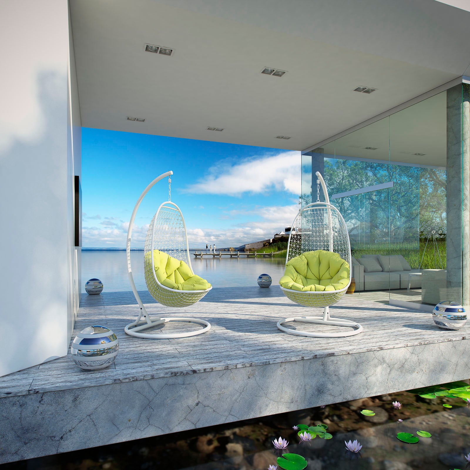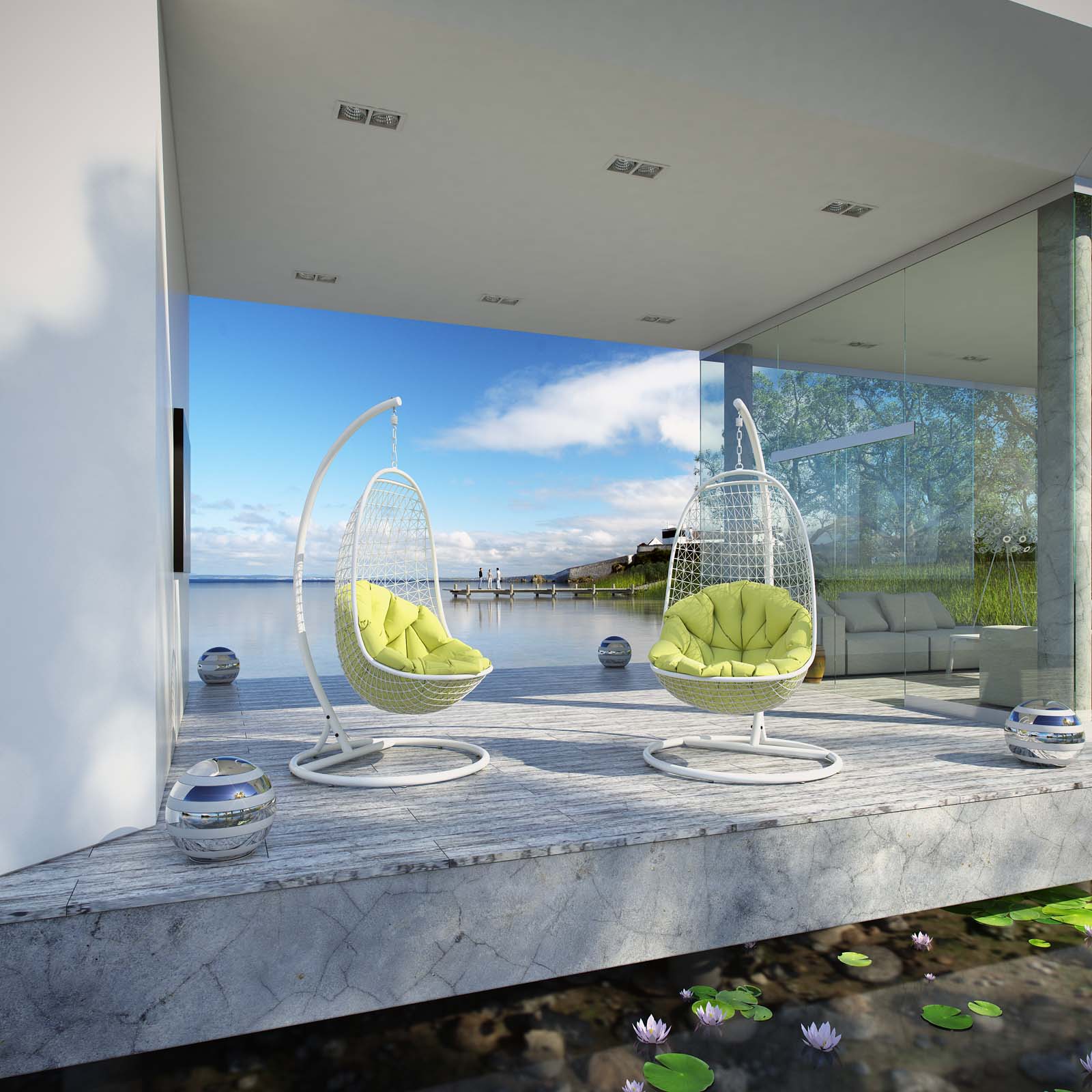 Sift through the sands of silent contemplation with this fanciful outdoor swing chair. Encounter Hanging Swing Chair is your guide through periods of growth and change. With a sturdy outdoor white metal stand and plush fluorescent green seating, set your sights on an awakened sense of confidence while safely ensconced in a patio swing chair with an elevated vantage point. Set Includes: One - Encounter Wicker Rattan Outdoor Wicker Patio Stand One - Encounter Wicker Rattan Outdoor Wicker Patio Swing Chair