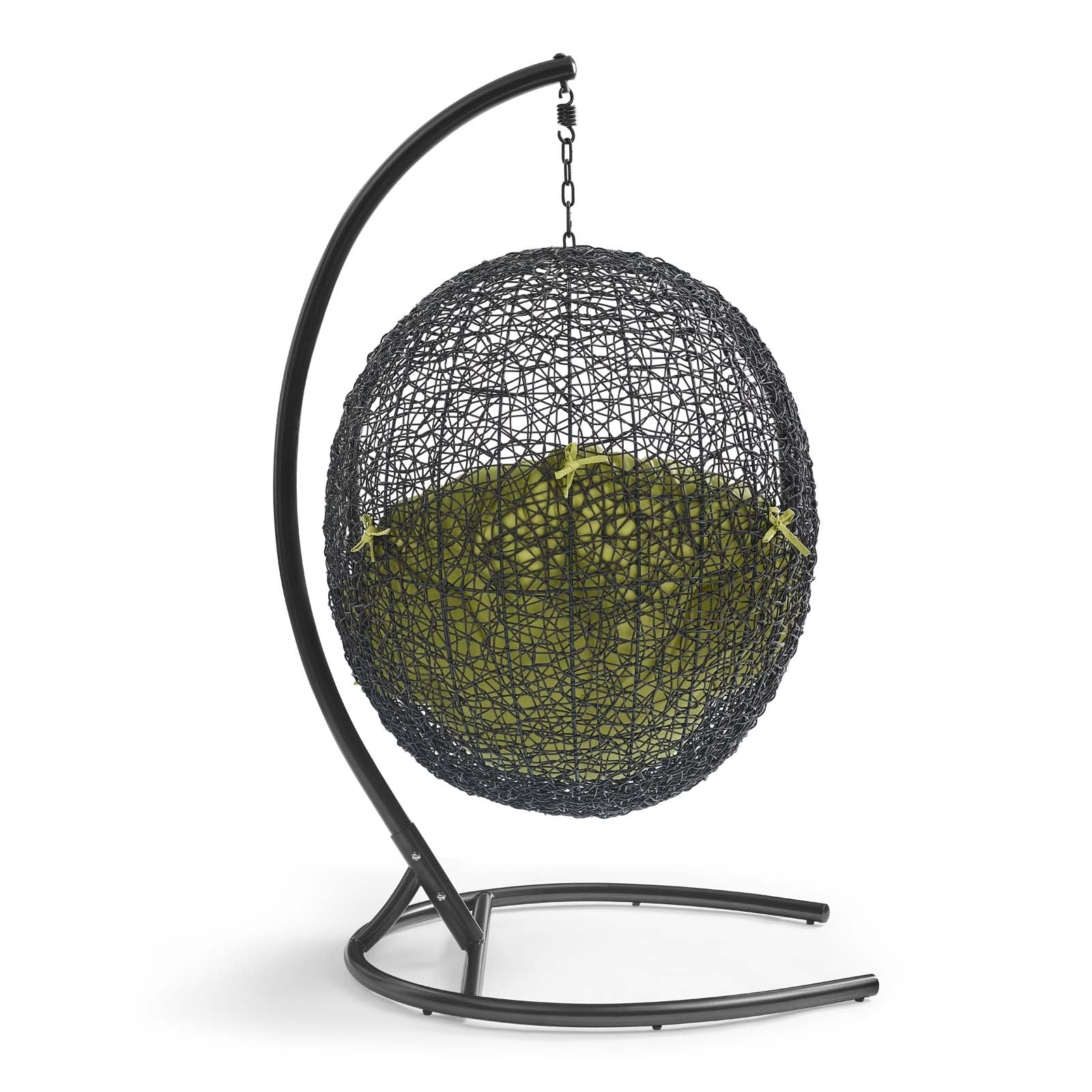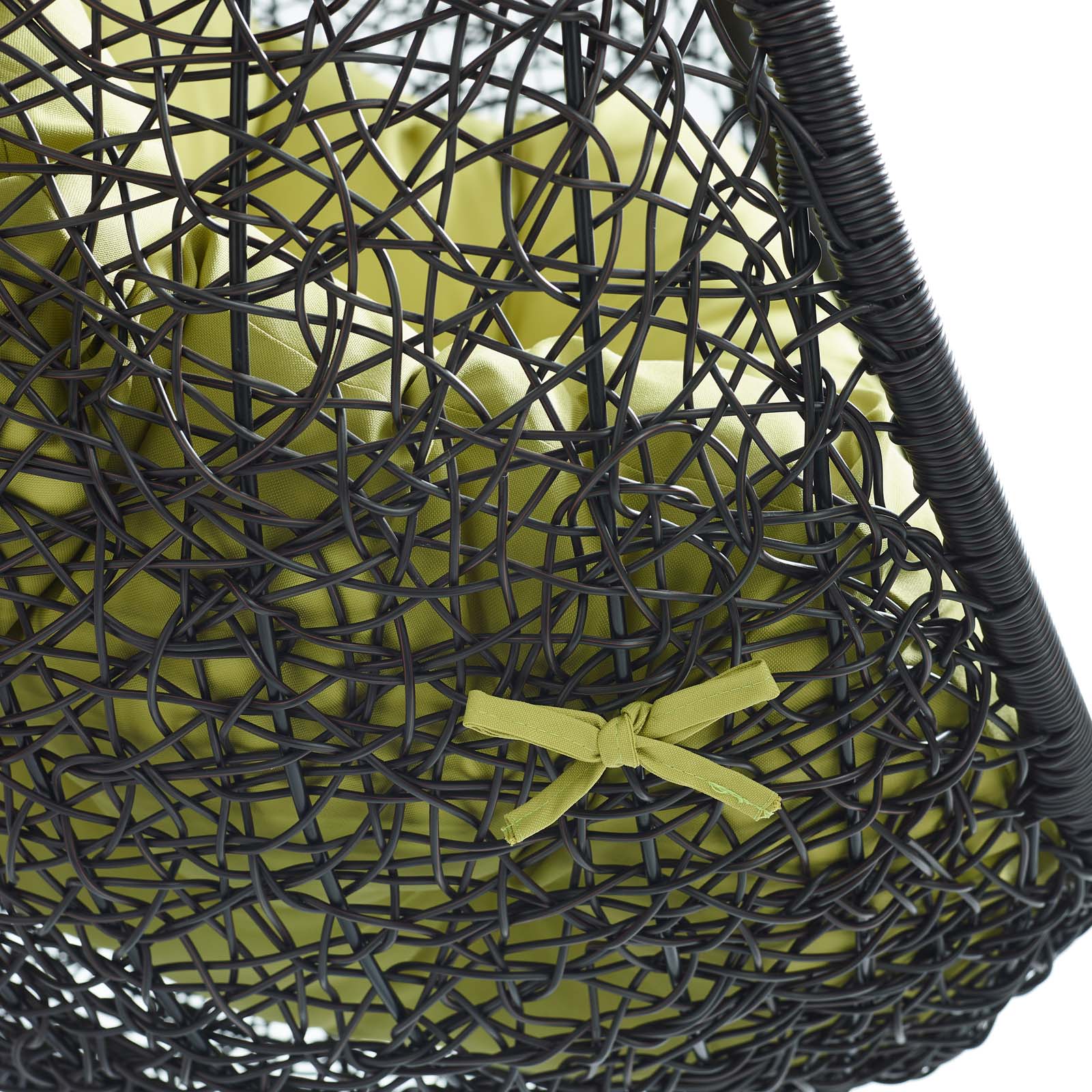 Embark on moments of metamorphosis and rebirth with an exotic hanging outdoor swing chair. Transform the mundane to heightened states of consciousness with Encase Outdoor Swing Chair. This hanging swing chair is comprised of a sturdy espresso metal stand and rattan seat. Surround yourself with plush fabric cushions to complete entry into a relaxed state in the Encase Hanging Chair. Set Includes: One - Encase Wicker Rattan Outdoor Wicker Patio Stand One - Encase Wicker Rattan Outdoor Wicker Patio Swing Chair