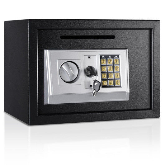 The digital safe box is a great security room for quick depository such as cash paper work or employee turnover. The electronic lock can easily be programmed by the user with a "safety key" override. The code consists of 3-8 programmed pin digits and keyless design is safe and convenient to you. The magnetic lock is designed for auto-locking the safe without any keys or pin code. The safe is set with a time out period after 3 incorrect combination attempts. The safe has pre-drilled holes behind it with included 2" for anchoring to the floor wall or cabinet. Don’t hesitate to buy home. Opens with digital pin or included override key Hidden lock with one key Security code from 3-8 digits using any number from 0-9 Time out period after 3 incorrect combination attempts Constructed with 2 mm thick solid steel 4 mm thick front door for more security Pre-drilled holes behind the safe with included 2" bolts for anchoring Inside tamper-proof hinges Carpet padding on inside bottom Mounting to the floor wall or cabinet