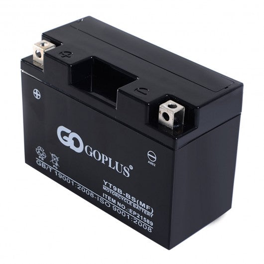 Specification: Color: Black Material of case body: ABS Material of positive plate: Lead oxide Material of negative plate: Lead Safety valve: Silicone rubber Terminal: Copper Division: Fiberglass Electrolyte: Vitriol Nominal voltage: 12V Rated capacity: 8Ah Battery dimension: 5.9" x 2.7" x 4.1"(L x W x H) Overall height: 4.1 inch Package includes: 1 x Motorcycle battery Note: 1.Please consider the compatible voltage before charging. 2.Please keep it away from inflammables and explosives. 3.The pack of batteries is UL and CE approved.