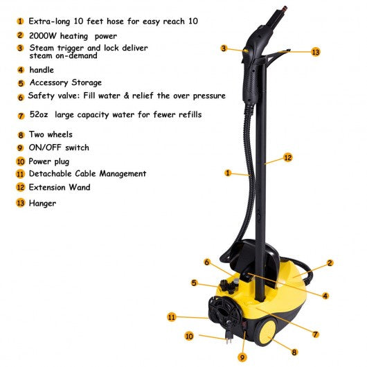 2000W Multi-Purpose Steam Cleaner with Dual Tank System
