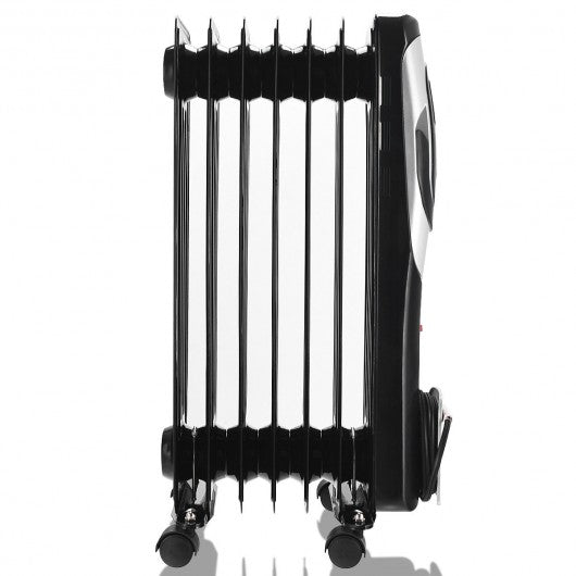 If you are looking for a heater to get through the chilliest this electric oil-filled radiator will be your great choice. The oil-filled radiator features 3 heat settings so you can set different temperature according to your different needs and it can heat your room of the house in the shortest time. Equipped with permanently sealed oil to heat your room highly efficiently and with auto shut off it provides reliable tip-over and overheat protection. In addition the four universal casters are convenient for moving between rooms. Its compact shape is ideal for storage. The quiet operation will never bother you when you fall asleep or focus on your work. What are you waiting for? Just buy it now! With 7 oil-filled radiator fins and maximum 1500 W power Equipped with adjustable thermostat to meet different needs 1-10 hour timer ensures just the right time warm comfort with peace of mind Equipped with permanently sealed oil for stable and efficient heating LCD display screen shows the data of the heater clearly Turn on/off automatically by comparing the room temperature with set temperature (55-86?F) Auto shut off provides reliable tip-over and overheat protection Exceptionally quiet operation ensures it won?t bother you from work sleep chat or anything Ideal for full room such as offices bedrooms and living rooms 4 universal casters and front carry handle for easy for moving The design of power cord housing offers convenience to storage Compact design and small dimension allows seasonal storage