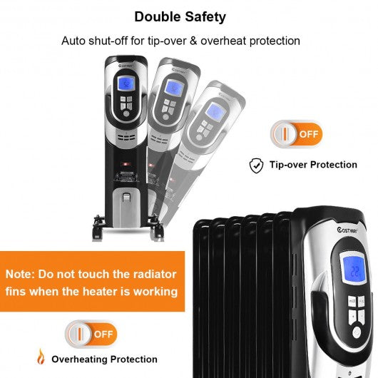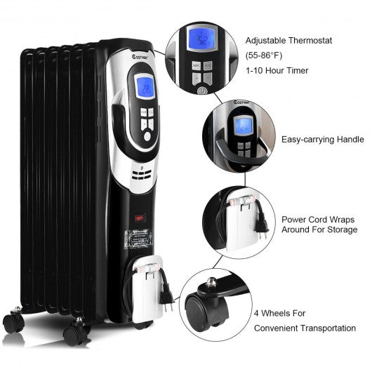 1500 W LCD 7-fin Timer Electric Oil Filled Radiator Heater