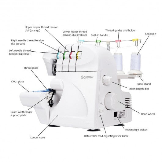 This is the serger overlock machine which is capable of producing various types of stitche. You can use it according to the combination of needle positions threading methods tension adjustment and the use of convertible right looper/spreader for producing various types of stitche. It also ensures pucker-free seams on light weight fabrics. It is most suit for shirring sleeves yokes front and back bodices skirt hems etc. If you are looking for a serger overlock machine like that. Don't hesitate to buy it. Features 2 needles and 2-3-4 thread capability for providing a wide selection of stitch options Free-arm sewing convertible presser foot and differential feed mechanism and light for a brighter work area Color-coded threading chart for fast and easy threading Differential feed offering a 0.7 - 2.0 ratio on many fabrics prevents wavy seams in knitted fabrics and movement between the layers of fabric Needle thread and wide open threading makes set-up a breeze A machine adjustment chart to help you to sew beautifully based on stiffness and thickness of fabric thread size and type 1200 stitches per minute allows professional speed for faster results The stitch width can be easily adjusted between 3.5 mm and 5.0 mm helping to provide the perfect stitch width for your project 4 built-in rolled hems and with LED light for bright Suitable for sewing seams hems decorative edges rolled hems cover hems and more