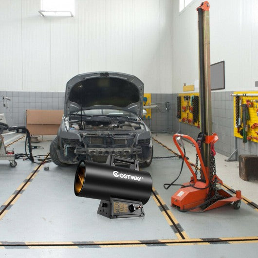 This is the portable propane forced air heater which is used in ventilated garages barns or construction sites. The standard 10-foot hose makes it easy to use it on any field. Besides it can start quickly and has excellent heating performance. The heating output can be chose from 40 000 and 60 000 btu to achieve the best heat. Auto-ignition design and cut-off protection make operation safer and prevent liquefied gases from being released into the air. In addition its overheat protection ensures your safety. It must be your trusty choice of heater. Come and try! Let it help you through the cold winter! Burn the fuel completely to get the best heat Two levels of heating output optional (40k/ 60k btus) Has the characteristics of high temperature resistance corrosion resistance and rust prevention With only 63db low operating noise Special nozzle makes it have strong oxygen supply characteristics Excellent heating performance enables the heating area up to 2 196 sq ft Equipped with handle for easy carrying and transportation Compact volume is advantageous for storage and space saving Equipped with a 10 feet hose for easily use Csa certification ensures quality and long-time service life and users'safety