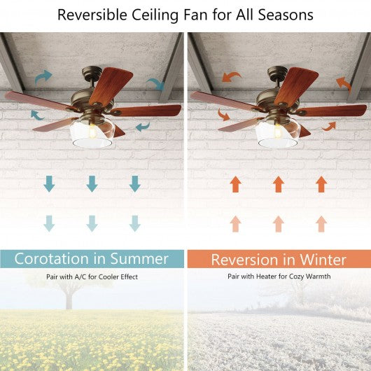 52" Vintage Ceiling Fan Light with Remote Control Reversible Blades Home Indoor