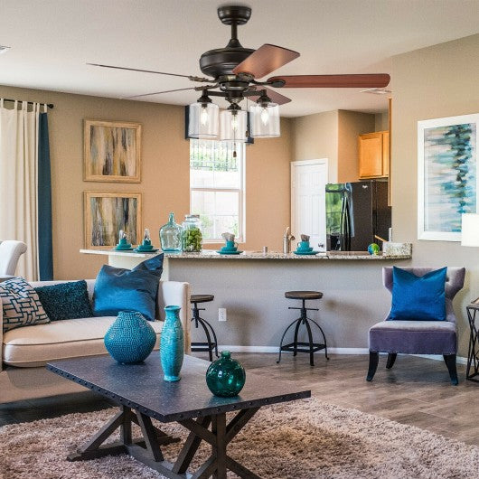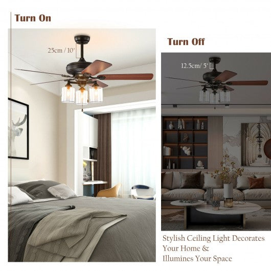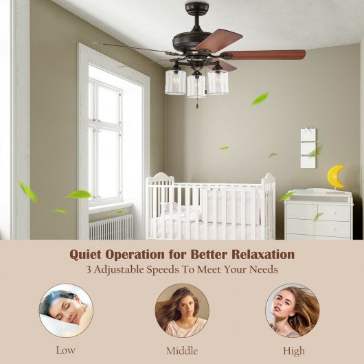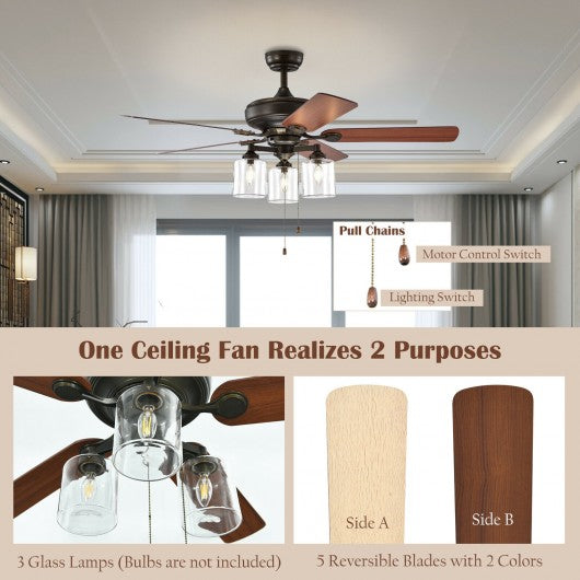 52" Ceiling Fan Light with Pull Chain and 5 Bronze Finished Reversible Blades